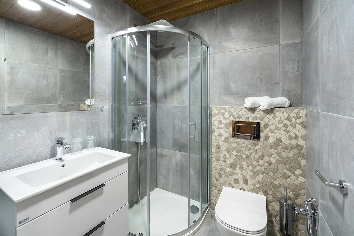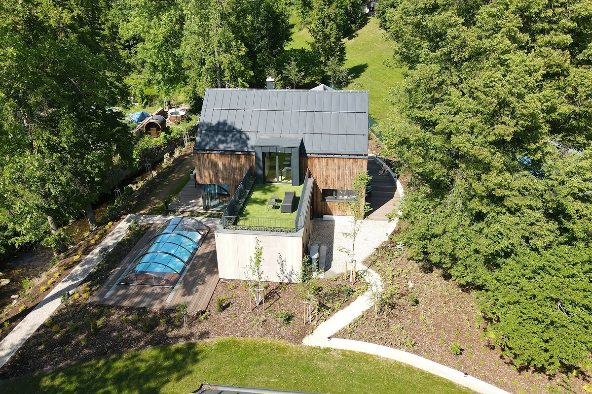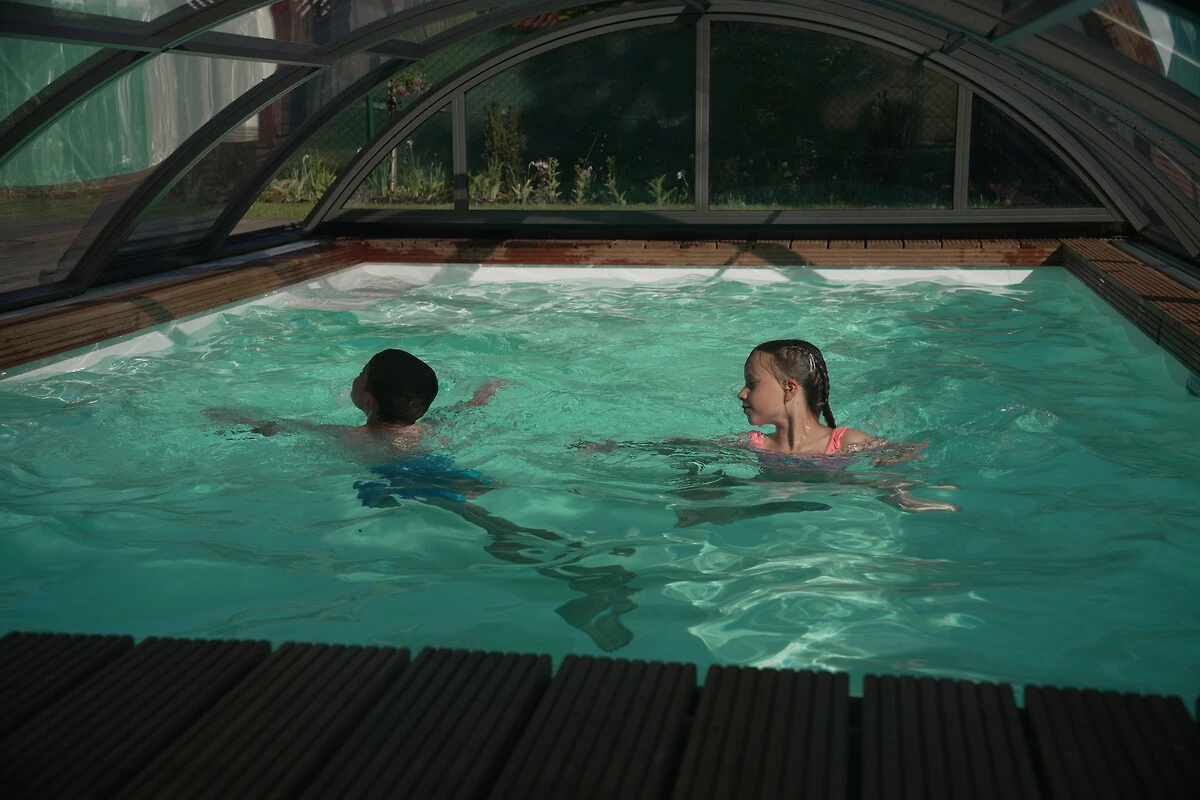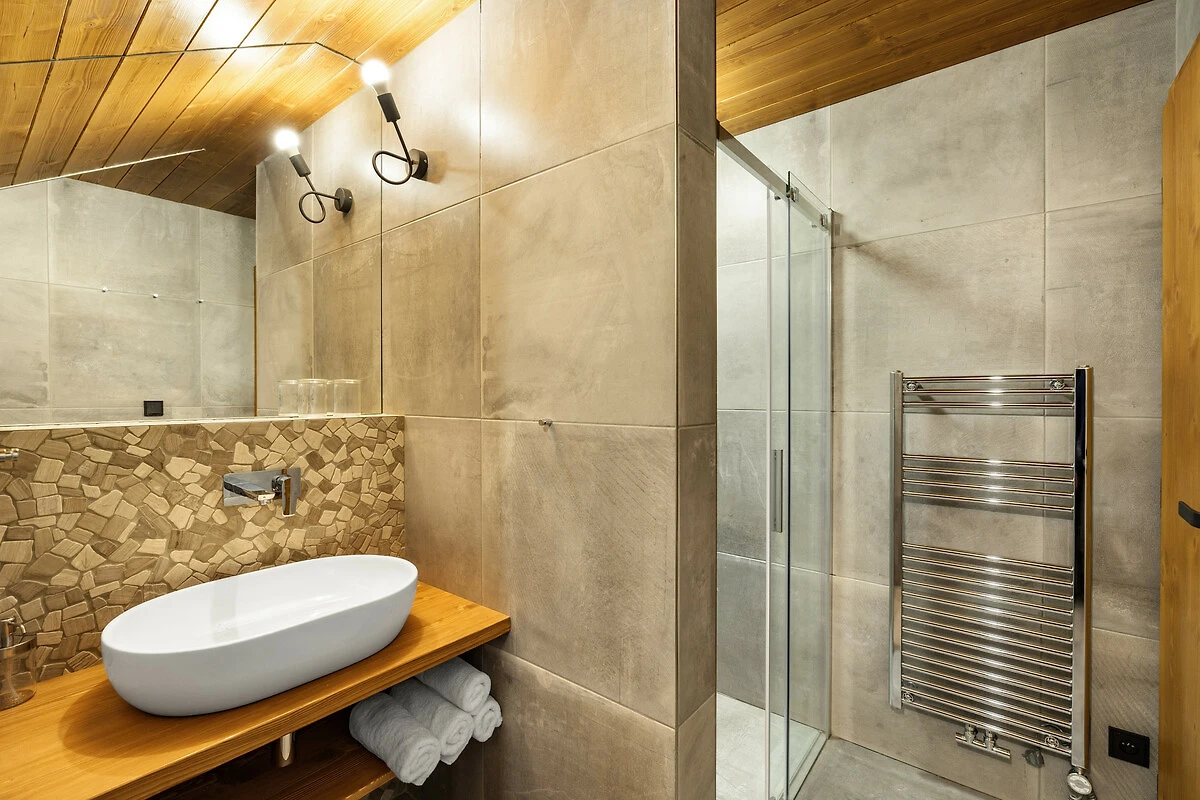 Buiten wacht een terras op de bovenverdieping en een zithoek met barbecue. Het overdekte, verwarmde zoutwaterzwembad is in de zomer een fijne plek voor ontspanning of spel en kinderen kunnen veilig spelen in het afgesloten terrein bij de beek en het kampvuur. De jacuzzi biedt ontspanning voor jong en oud, na een dag in de bergen of op de piste. Voor sport- of wintersportuitrusting is er een technische ruimte met wasmachine en droger.