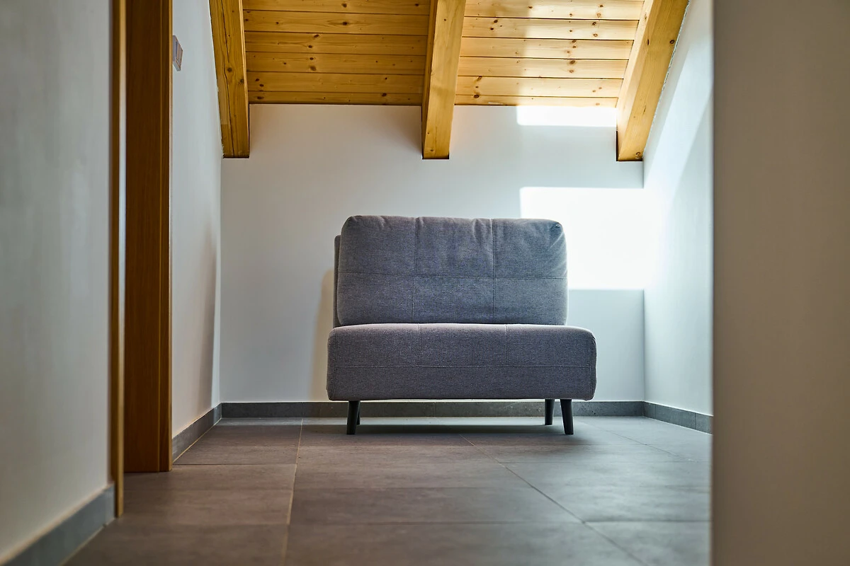 - 1 maisonnette-appartement voor maximaal 4 personen: Voorzien van een open woonkamer met kitchenette en toegang tot een terras, een toilet en badkamer beneden, en boven een slaapkamer met tweepersoonsbed en badkamer met douche.
