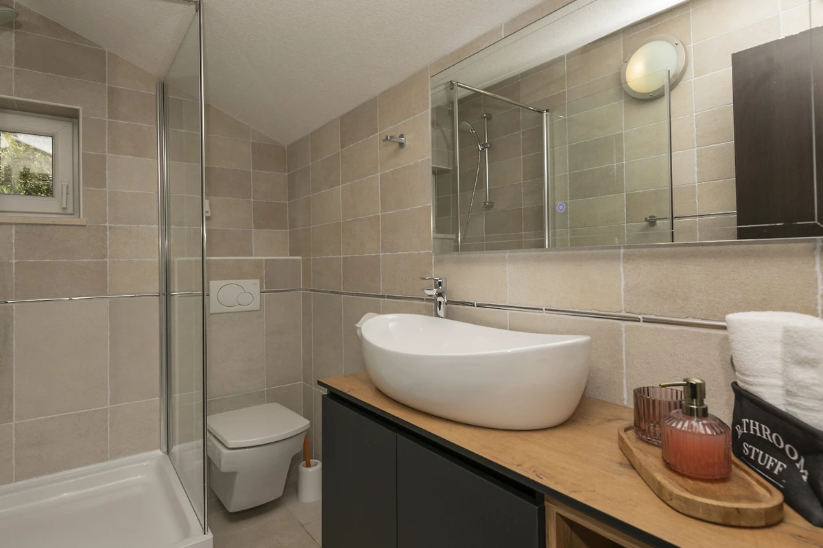 De open keuken, met keramisch fornuis, is uitgerust met koelkast, magnetron, oven, vriezer, vaatwasmachine, servies/bestek, keukengerei, koffiezetapparaat en broodrooster.