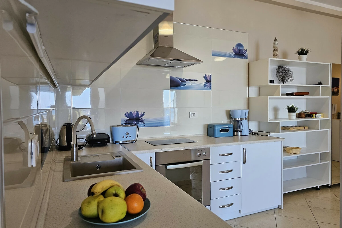 De open keuken, met keramisch fornuis, is uitgerust met koelkast, oven, vaatwasmachine, keukengerei, broodrooster en waterkoker.