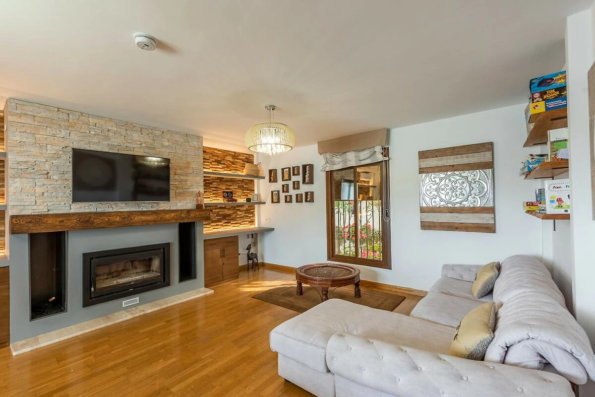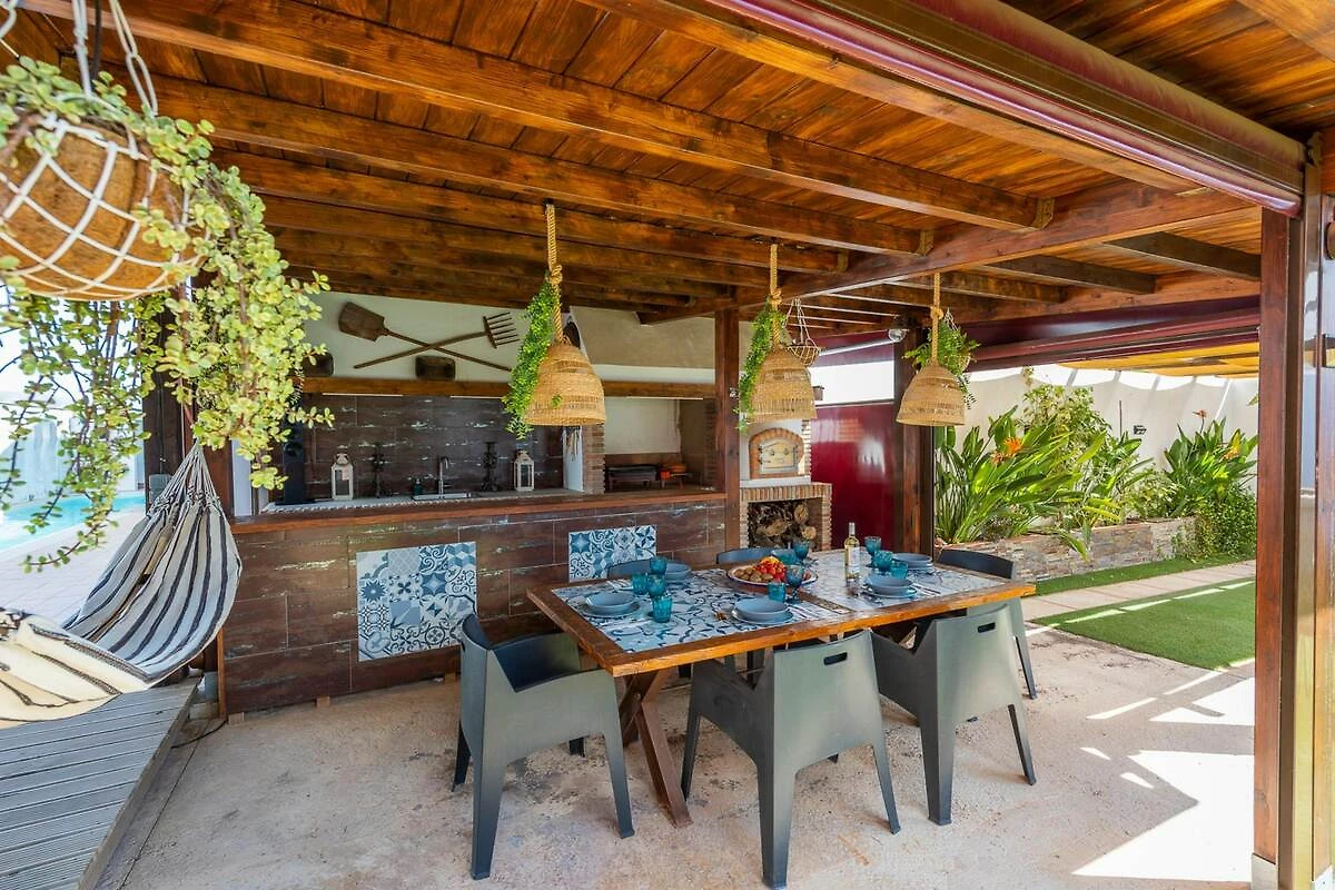 Het hoofdhuis beschikt over drie gezellige slaapkamers, elk met airconditioning en smart-tv's. Het omvat een ruime woonkamer met een houtkachel, een volledig uitgeruste keuken en drie badkamers. De privé-buitenruimte omvat een zwembad van 14 meter met nachtverlichting, een solarium met ligbedden en een barbecueplek. Extra entertainmentopties zijn onder andere een pingpongtafel, dartbord en kinderspellen. Een apart houten huis voegt extra ruimte toe, met een volledig functionele keuken, woonkamer en een grote slaapkamer.