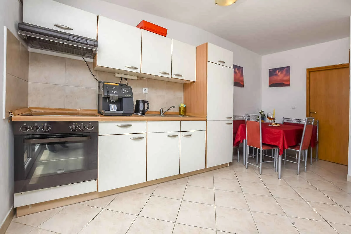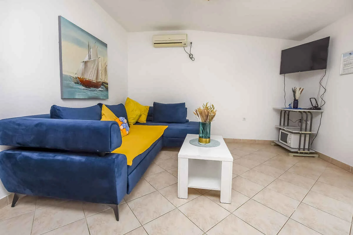 Ligging: Roznica. De modern ingerichte vakantiewoning ligt rustig en zonnig, in een apartementenhuis en aan de rand van de plaats. Uitzicht vanaf het grondstuk op de zee. Winkel 100 m. Restaurant 200 m. Gemeentecentrum 500 m. Roznica: Apotheek 1,7 km, Arts 500 m, discotheek 7 km en Bank 800 m. Vliegveld in Splitsen 24 km.