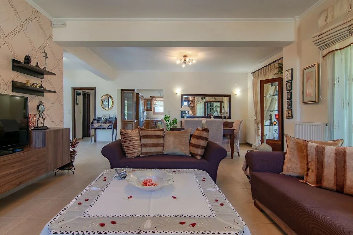 De villa in Prines heeft 4 slaapkamer(s) en kan gereserveerd worden tot 8 personen. Accommodatie De accommodatie heeft een oppervlakte van 240 m² iscomfortabel ingerichte en is volledig uitgerust, met uitzicht de bergen en de tuin. De woning bevindt zich op 750 m van de supermarkt "Prines mini markets", 750 m van het restaurant "Prines taverns", 4 km van het zandstrand "Gerani beach", 9 km van het dorp "Rethymno", 64 km van de luchthaven "Chania International Airport" en is gelegen in een gebied met de volgende kenmerken kindvriendelijke buurt zone en op het platteland. Tevens heeft u de beschikking over tuin, tuinmeubilair, omheind perceel, terras, wasmachine, droger, barbecue, openhaard, strijkijzer, internet (wifi), haardroger, balkon, airconditioning, zwembad privé, openlucht parkeerplaats in het zelfde gebouw, 1 Televisie. De open keuken, elektrisch fornuis, is uitgerust met koelkast, magnetron, oven, vriezer, vaatwasmachine, servies/bestek, keukengerei, koffiezetapparaat, broodrooster, waterkoker, sapcentrifuge, keukengerei, borden en schalen.