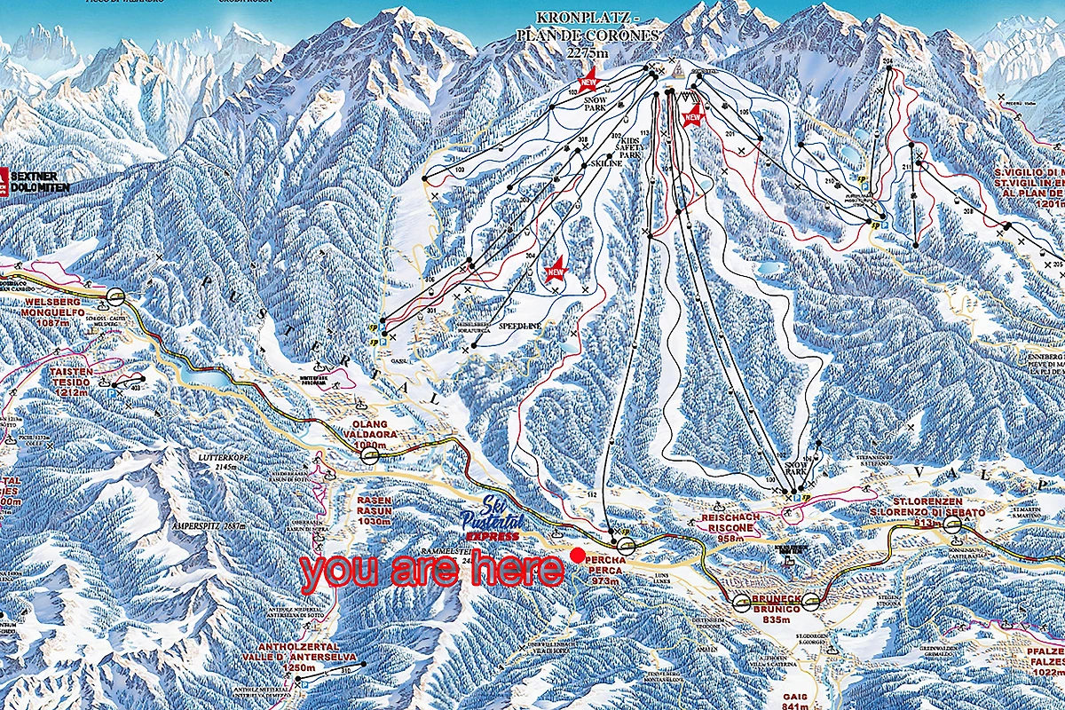 Percha is een plaats nabij de Dolomieten. Het is 400 m naar het treinstation met kabelbaan. Met de trein ben je in 8 minuten in Bruneck. De supermarkt is 200 m verderop. De bushalte is 100 m verderop. Met de kabelbaan bereik je de top van de Kronplatz in 20 minuten. In de winter geniet je van een van de grootste en mooiste skipanorama’s van de Alpen met diepe uitzichten op de Dolomieten.