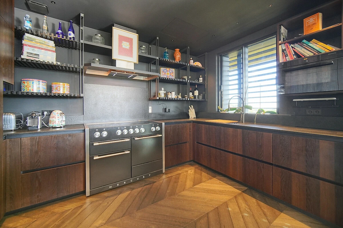 De open keuken, met inductie kookplaat, is uitgerust met koelkast, magnetron, oven, vriezer, vaatwasmachine, servies/bestek, keukengerei, koffiezetapparaat, broodrooster, waterkoker en sapcentrifuge.