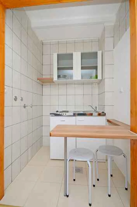 Uw vakantiewoning: Uw vakantiewoning beslaat 1 verdieping, 1 kamers (daarvan 1 slaapkamer), is 15 m² groot en is geschikt voor maximaal 2 personen. Een airconditioning zorgt op hete dagen voor een aangename temperatuur. De indeling van de kamers is als volgt: slaapkamer met 1 tweepersoonsbed en TV. kookhoek in de woonkamer met elektrisch fornuis (2 kookplaat) en koelkast. badkamer met douche en WC.