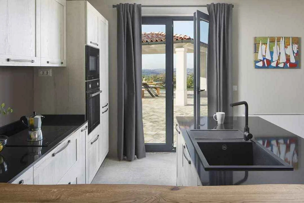 Ligging: Vižinada. De vrijstaand villa is modern en luxurieus ingericht. Deze plaats is populair vanwege het ligt op een rustige plek. Bij de villa zijn U 3 parkeerplaatsen voor meerdere auto's op het perceel beschikbaar. De dichtsbijzijnde winkels zijn op 3 km afstand en restaurant 6 km.