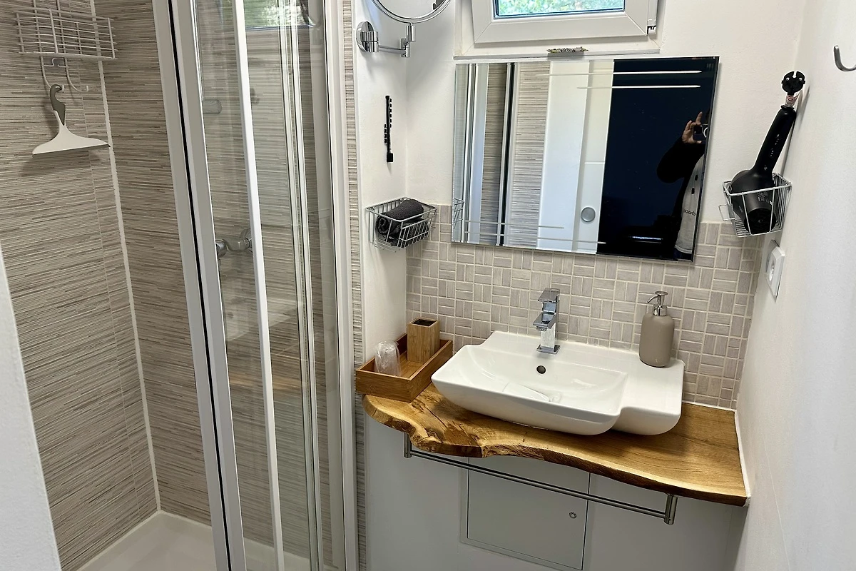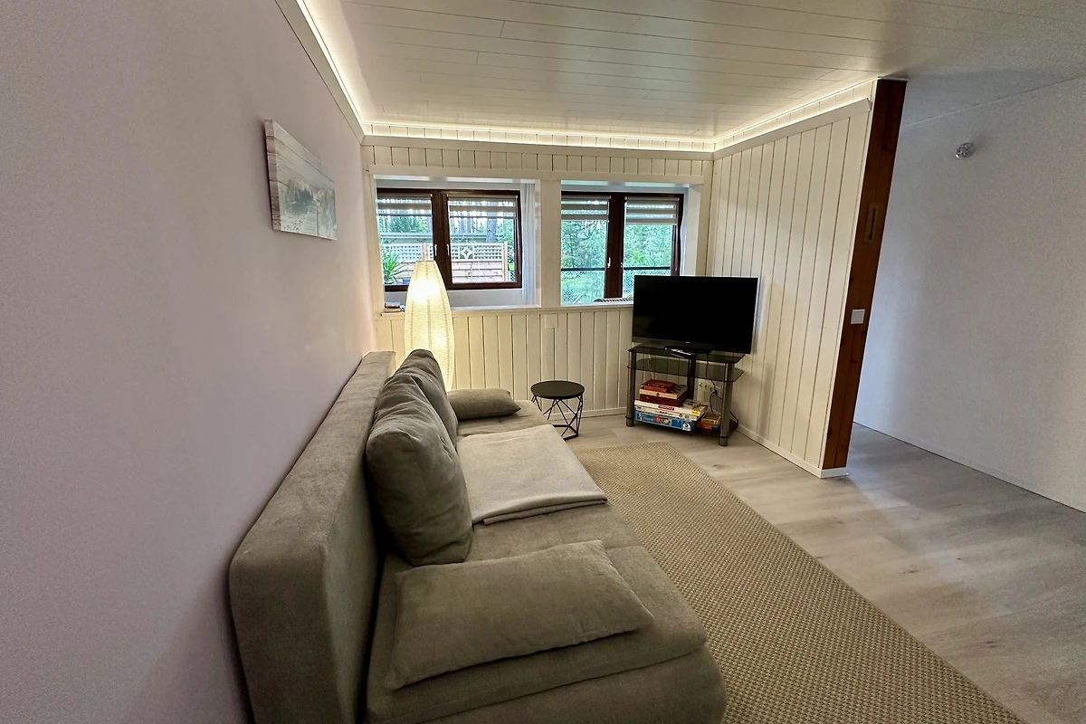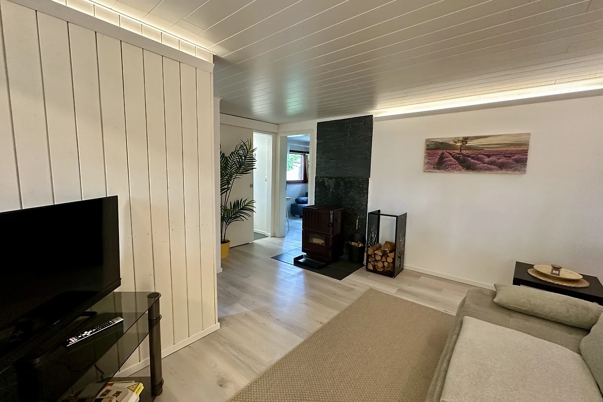 Het vakantiehuis zelf is tussen 2020 en 2023 uitgebreid gerenoveerd en opnieuw ingericht. Het omvat een woonoppervlakte van ca. 65 m² met 4 kamers (2 kleine slaapkamers, 1 woonkamer, een loggia met eethoek en chillhoek), een volledig ingerichte keuken, een kleine doucheruimte en een toilet. Er zijn 4 slaapplaatsen beschikbaar die zich in de hoofdslaapkamer (boxspring tweepersoonsbed), in de 2e slaapkamer (slaapbank) en in de woonkamer (slaapbank) bevinden. Daarnaast kan op aanvraag een babybedje en een kinderstoel beschikbaar worden gesteld. Op koude dagen is het mogelijk om de kachel aan te steken of de aanwezige infraroodverwarming te gebruiken.