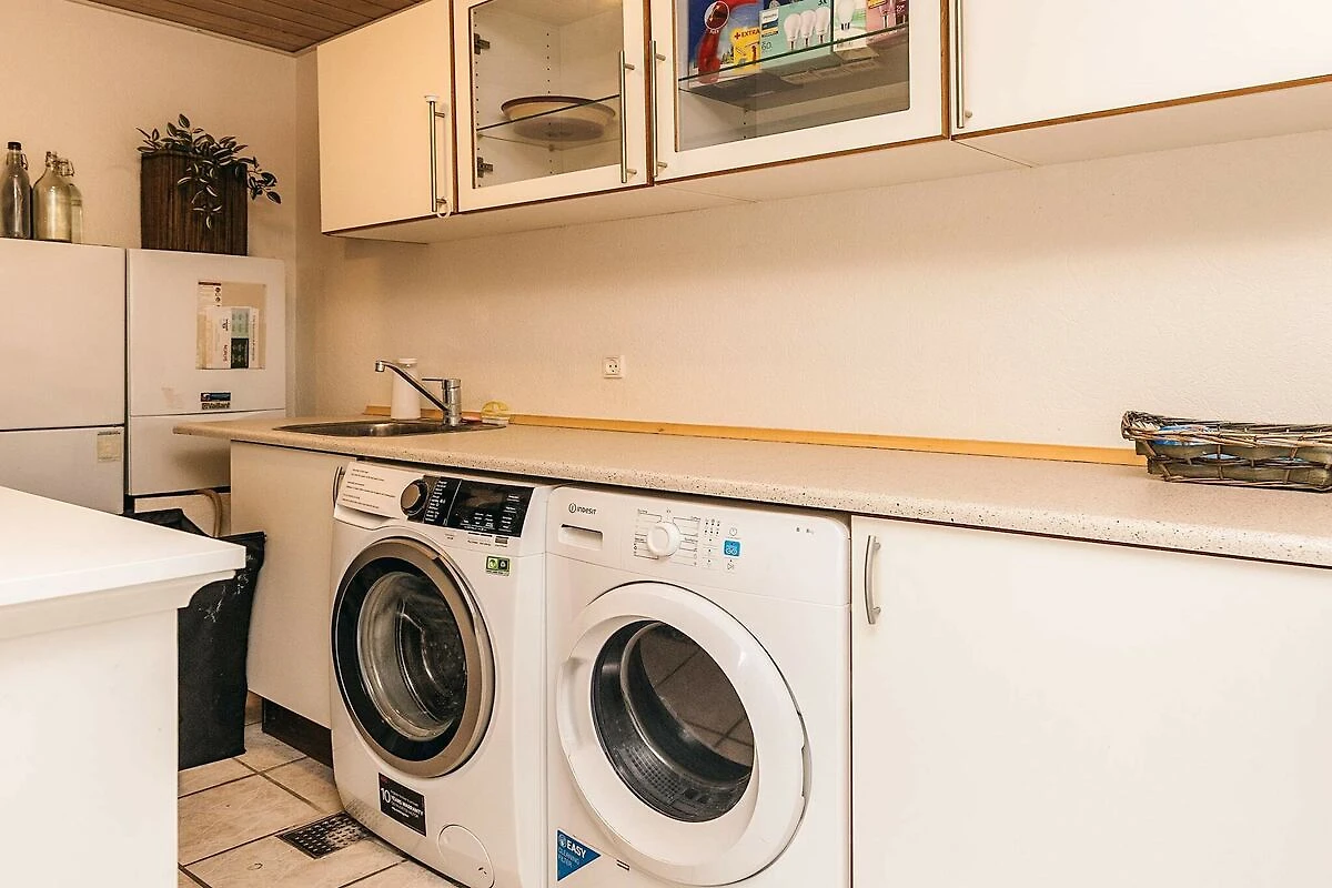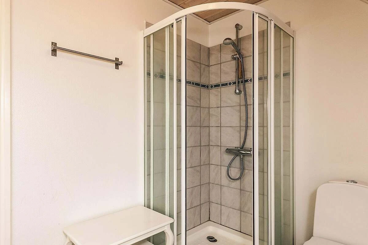 Keuken(fornuis(elektrisch), magnetron, afwasmachine, koelkast, vriezer(1-59L), kinderstoel), woon/slaapkamer(TV, chromecast), slaapkamer(2-pers. bed), slaapkamer(2x 1-pers. bed), slaapkamer(2x 1-pers. bed), badkamer(wasdroger, wasbak, douche, toilet, wasmachine), badkamer(wasbak, douche, toilet), carport, terras