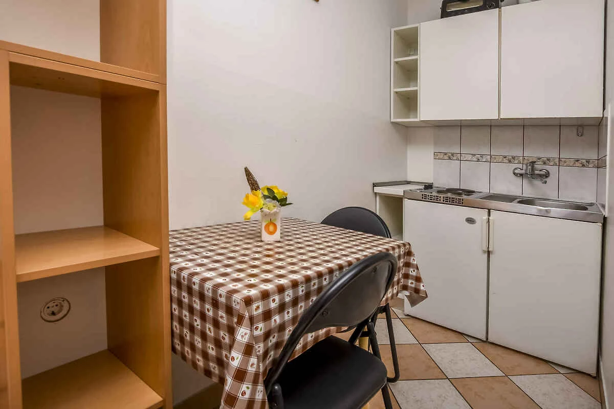 Uw vakantiewoning: Uw vakantiewoning beslaat 1 verdieping, 1 kamers, is 14 m² groot en is geschikt voor maximaal 2 personen. De indeling van de kamers is als volgt: woon/slaapkamer met 1 tweepersoonsbed, zithoek, eethoek en TV. De eethoek heeft plaats voor 2 personen. kookhoek in de woonkamer met elektrisch fornuis (4 kookplaat), koelkast (vriesvak), koffiemachine en elektrische waterkoker. badkamer met douche, WC en venster.