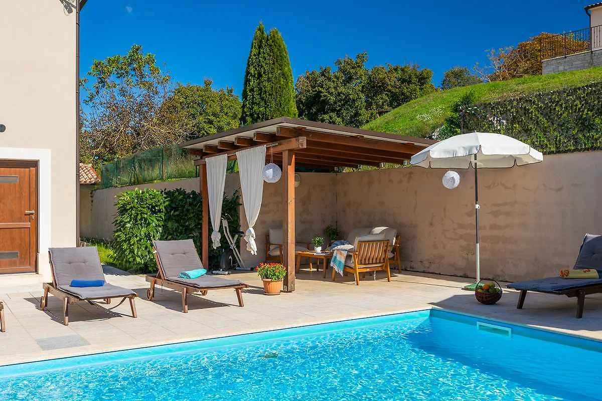 Ligging: Beram. De vrijstaand en in 2012 gerenoveerde villa is modern en functioneel ingericht. Het grondstuk is in een woongebied. Deze plaats is populair vanwege het ligt op een zonnige plek. Bij de villa zijn U 5 parkeerplaatsen voor meerdere auto's op het perceel beschikbaar. De dichtsbijzijnde winkels zijn op 2 km afstand, restaurant 100 m en centrum 7 km. station in 25 km. vliegveld in 30 km.