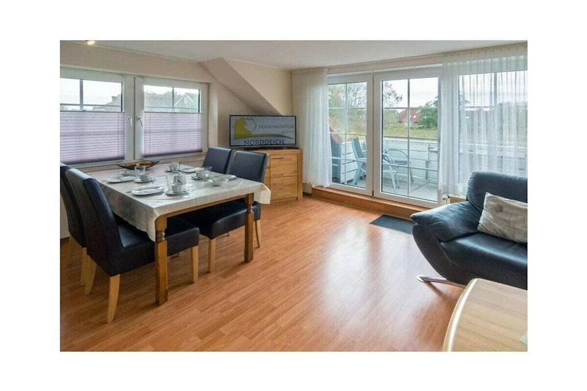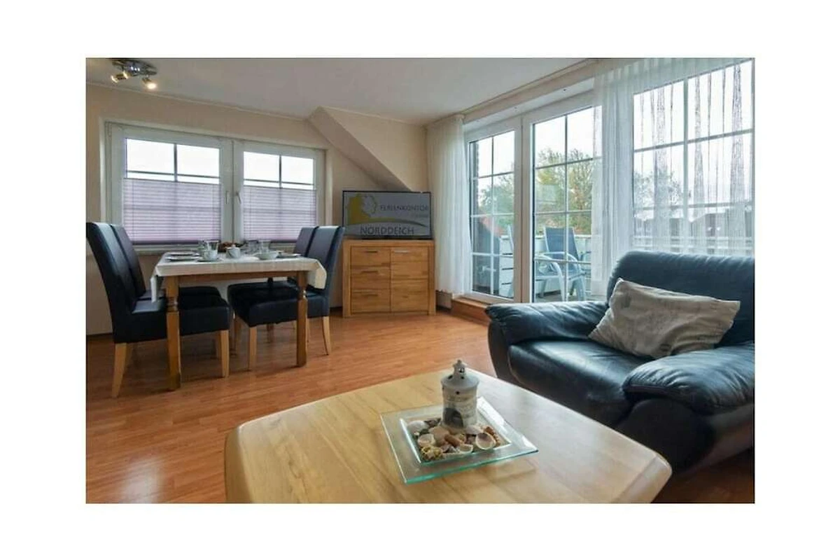 Wat een sfeer! Supergezellig en rustig, perfect om te ontspannen na een dagje strand. Het uitzicht vanaf het balkon is geweldig, en de keuken heeft alles wat je nodig hebt voor een kooksessie met vrienden. Bovendien is het strand van Norddeich op loopafstand. Een 10/10, een echte aanrader voor een ontspannend uitje!