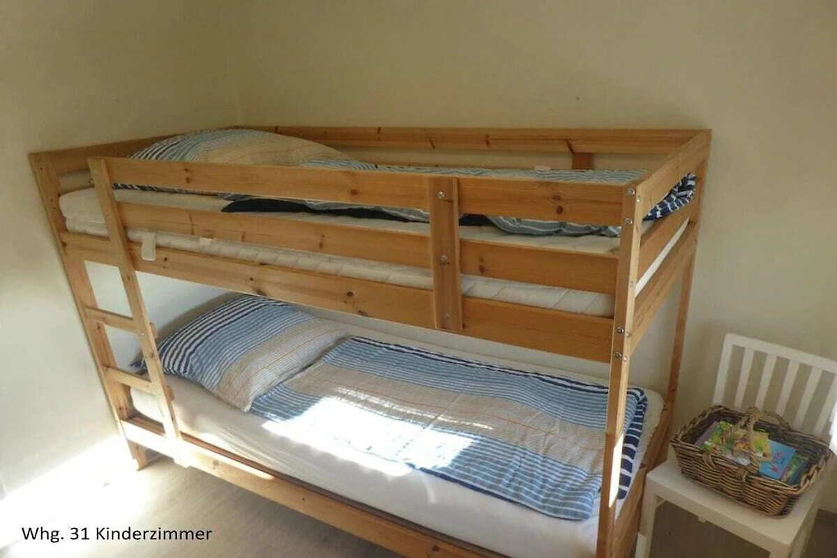 Parterre: (hal(), keuken(kachel, kachel, kachel, kachel, kookplaat, koffiezetapparaat, oven, magnetron, afwasmachine, koelkast, vriezer, , ), woon/eetkamer(TV, TV, eettafel, DVD-speler, Blu-ray speler, radio, CD-speler, ), slaapkamer(2-pers. bed, 2-pers. bed, ), kinderslaapkamer(stapelbed, ))