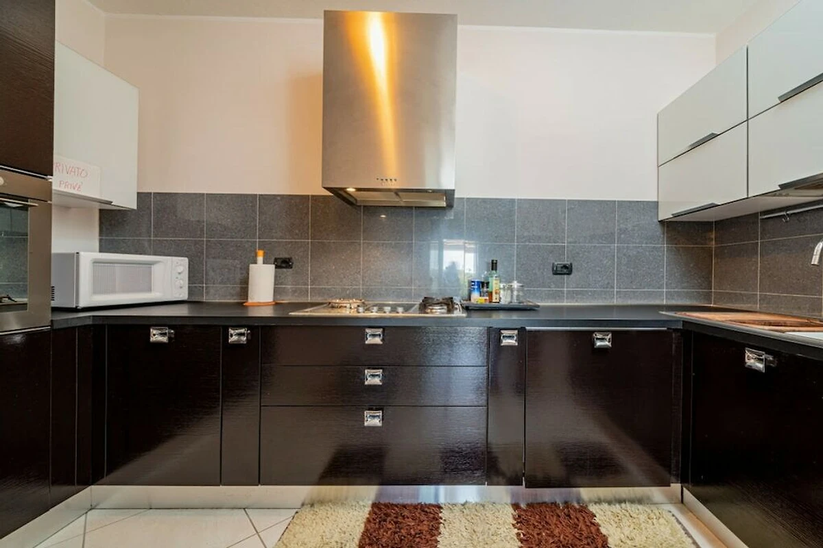 Het juweel van het appartement is de buitenruimte, voorzien van veel groen, een barbecue en een set banken om buiten te genieten van zomeravonden.