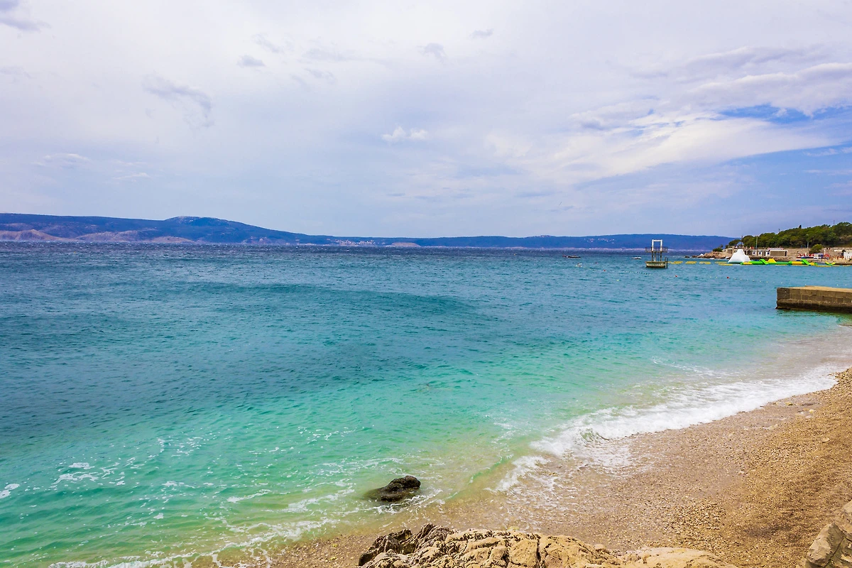 In de zomer: Zwemmogelijkheid in Novi Vinodolski 550 m, strand met kiezel, steentjes, rotsen en zwemplateau's in Novi Vinodolski, 550 m van uw verblijf vandaan.