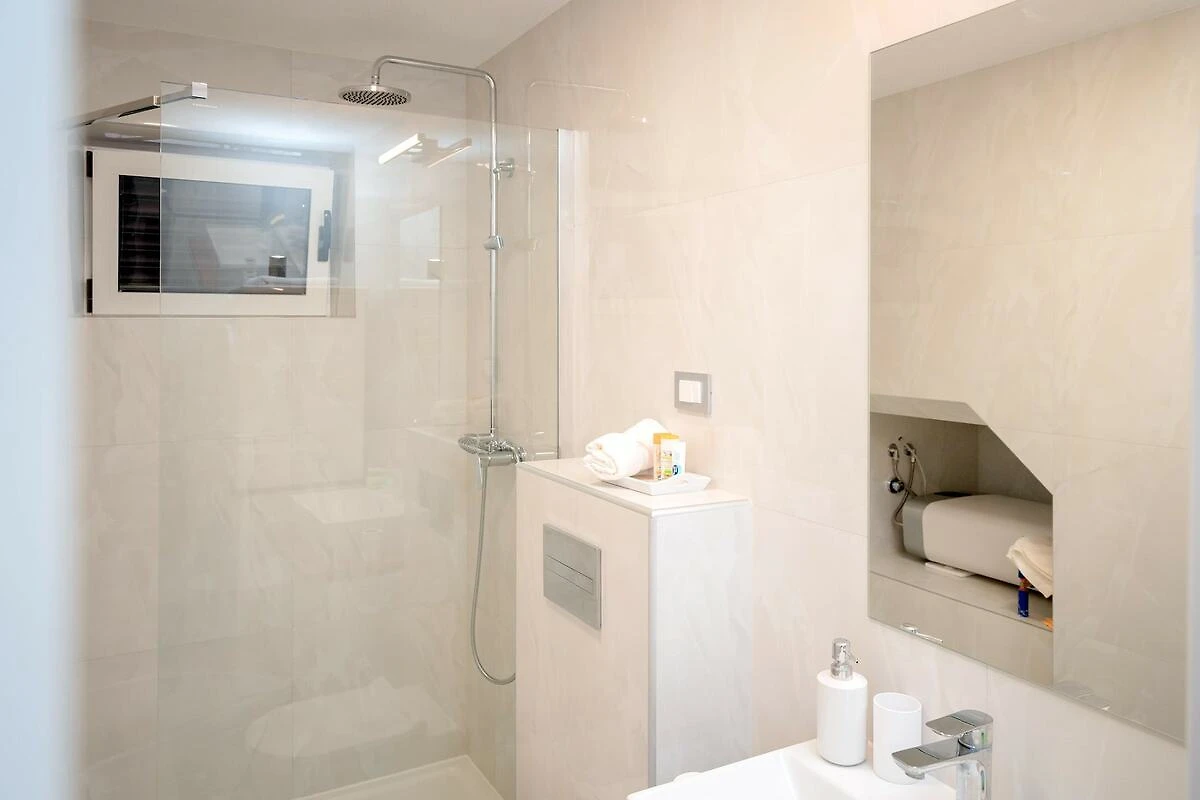 Op de 1e etage: (slaapkamer met badkamer(2-pers. bed, TV(flatscreen), douche, wastafel, toilet, airconditioning), slaapkamer met badkamer(2-pers. bed, TV(flatscreen), douche, wastafel, toilet, airconditioning), wasruimte(wasdroger, wasmachine), terras(privé))