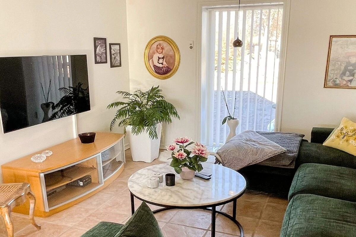 Fantastische Lage direkt am Meer im Schärengarten von Blekinge, mit Sandstrand und Steg für ein erfrischendes Bad, genau das bietet diese geräumige Ferienwohnung. Dank der Nähe zur Natur ist dies die perfekte Wahl für alle, die im Urlaub Ruhe und Entspannung am Wasser suchen. Es gibt auch Möglichkeiten für verschiedene Aktivitäten wie Spaziergänge, Rudern am Steg, Angeln oder einen Einkaufsbummel in der idyllischen Kleinstadt Ronneby. Das Haus verfügt über zwei separat vermietete Wohnungen. Diese befindet sich im Erdgeschoss und hat einen Eingang vom großen, möblierten Balkon mit Meerblick. Sie können mit Freunden und Familie Urlaub machen, indem Sie eine eigene Wohnung im Haus buchen. Sie teilen sich den Zugang zum Steg, zum Swimmingpool und zum Ruderboot mit Ihrem Nachbarn. Die andere Wohnung finden Sie unter 60917. Hier im hellen, freundlichen Flur im Eingangsbereich befindet sich eine Waschküche. Die voll ausgestattete Küche zur Selbstverpflegung bietet einen großen Esstisch zum gemütlichen Beisammensein und einen wunderschönen Blick auf das Meer. Von der Küche aus führt eine Terrassentür auf die große, eingezäunte Holzterrasse mit Gartenmöbeln. Hier finden Sie Ruhe und können den herrlichen Blick auf den Schärengarten genießen. Der offene Grundriss mit den schönen Fliesenböden vermittelt ein Gefühl von Gemütlichkeit und Luxus. Der Holzofen im großen Flur in der Mitte der Wohnung sorgt für Behaglichkeit und verbreitet angenehme Wärme. Das Schlafzimmer mit Doppelbett ist in ruhigen, hellen Farben gehalten. Das Wohnzimmer im zweiten Stock ist in einem Teil mit einem Schlafsofa für zwei Personen und Apple TV ausgestattet, das mit einem eigenen Abonnement genutzt werden kann. Der andere Teil bietet mit einer Stufe und großen Fenstern mit Blick aufs Meer optimale Entspannung auf dem Sofa. Das geräumige Badezimmer verfügt über WC, Waschbecken und eine Glasduschwand. Ronneby, bekannt als Kurort, hat in seiner Umgebung viele schöne Häuser aus der Jahrhundertwende zu bieten. Im Ronneby Brunnspark gibt es im Sommer ein offenes Wasser- und Spielland mit einer Wasserrutsche, die bei Erwachsenen und Kindern gleichermaßen beliebt ist. Vom Zentrum aus fährt in den Sommermonaten ein Bootsverkehr über den Ronneby-Fluss hinaus in den Schärengarten. Nur einen kurzen Spaziergang vom Haus entfernt bringt Sie der Bootsverkehr zum wunderschönen Karön, wo Sie in der üppigen Natur der Insel picknicken können. Musikbegeisterte können in der Umgebung verschiedene Veranstaltungen besuchen, wie zum Beispiel Schwedenrock und das Hasslö-Festival. Genießen Sie Erholung und Komfort in einem ruhigen Urlaubsparadies.