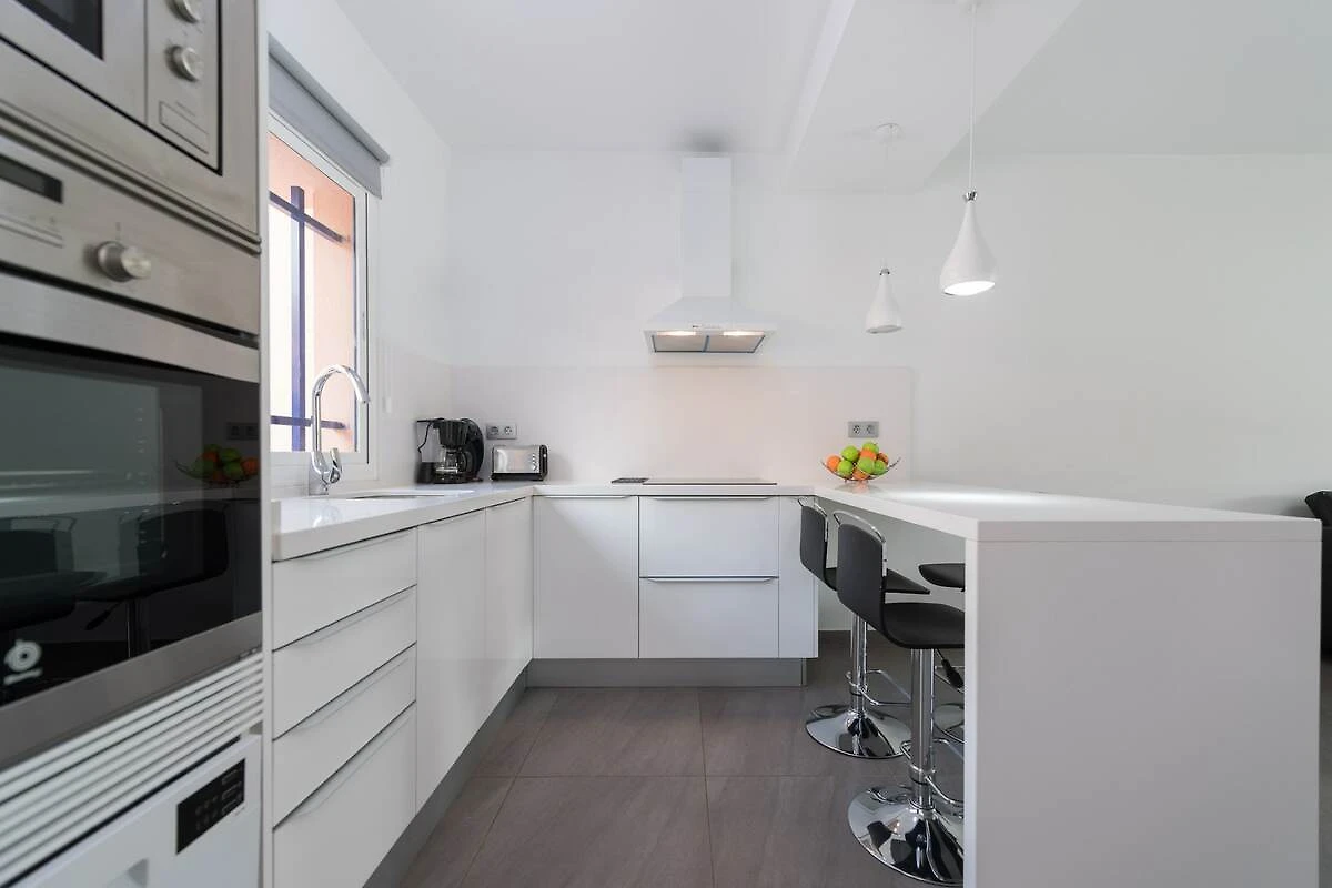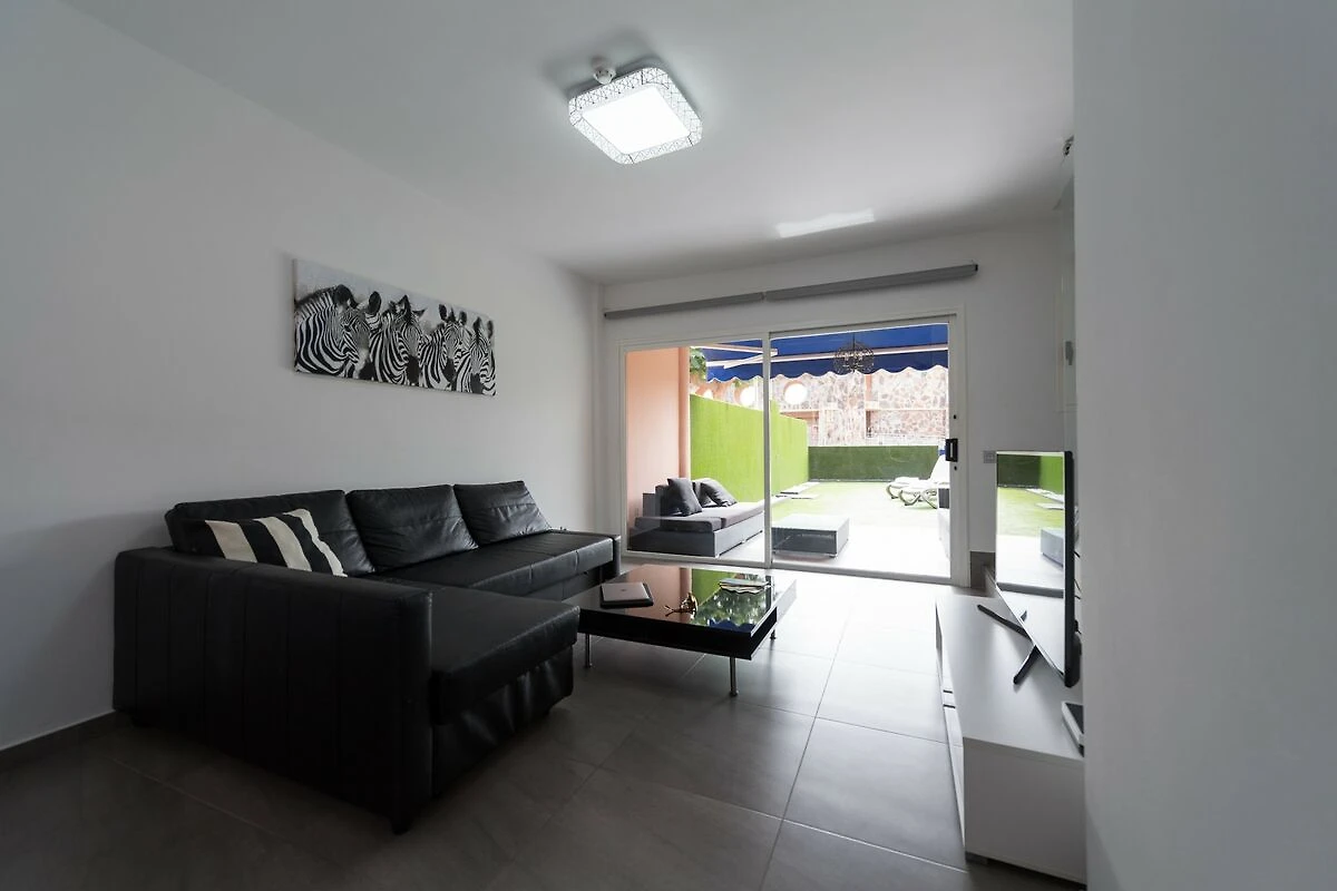 Dit moderne, volledig gerenoveerde duplex appartement biedt een perfect toevluchtsoord voor degenen die comfort en gemak zoeken aan het strand. Met twee slaapkamers biedt het comfortabel plaats aan maximaal 4 gasten. De accommodatie beschikt over twee badkamers, een privézwembad en toegang tot een gemeenschappelijk zwembad. Elke kamer is uitgerust met airconditioning, smart-tv's en supersnel wifi, wat zorgt voor een ontspannen en aangenaam verblijf. De begane grond bestaat uit een open woonkamer met een volledig uitgeruste keuken en ruime terrassen met ligstoelen, een chill-outruimte en een eetruimte buiten met een barbecue. Het appartement ligt in het prestigieuze gebied Maspalomas/Meloneras, waardoor het ideaal is voor gezinnen of groepen.