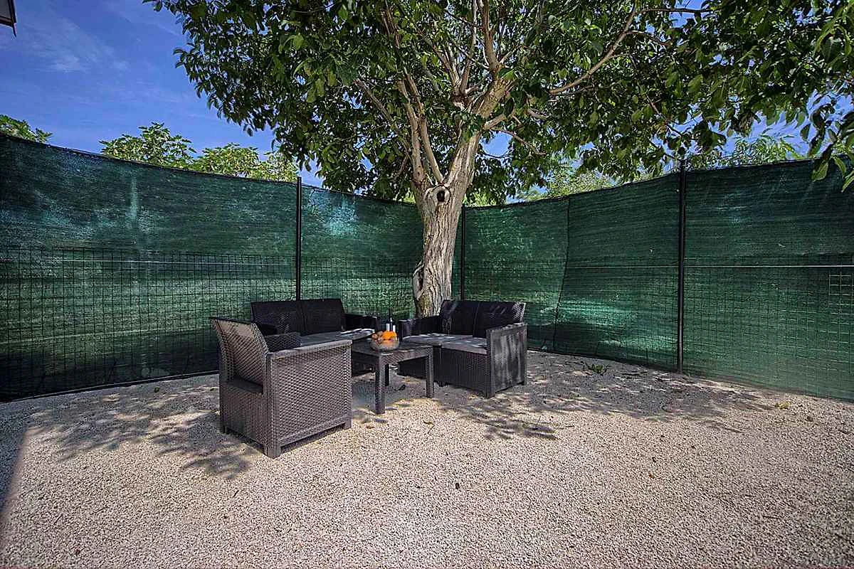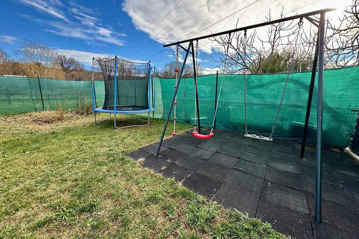 Het vakantiehuis ligt op een 700 m² groot, gesloten terrein met tuin. Het terrein is met een hek omsloten. U kunt buiten relaxen met tuinmeubeklen. De speelplaats met schommel laat kinderharten sneller slaan. Een barbecue is aanwezig. trampoline