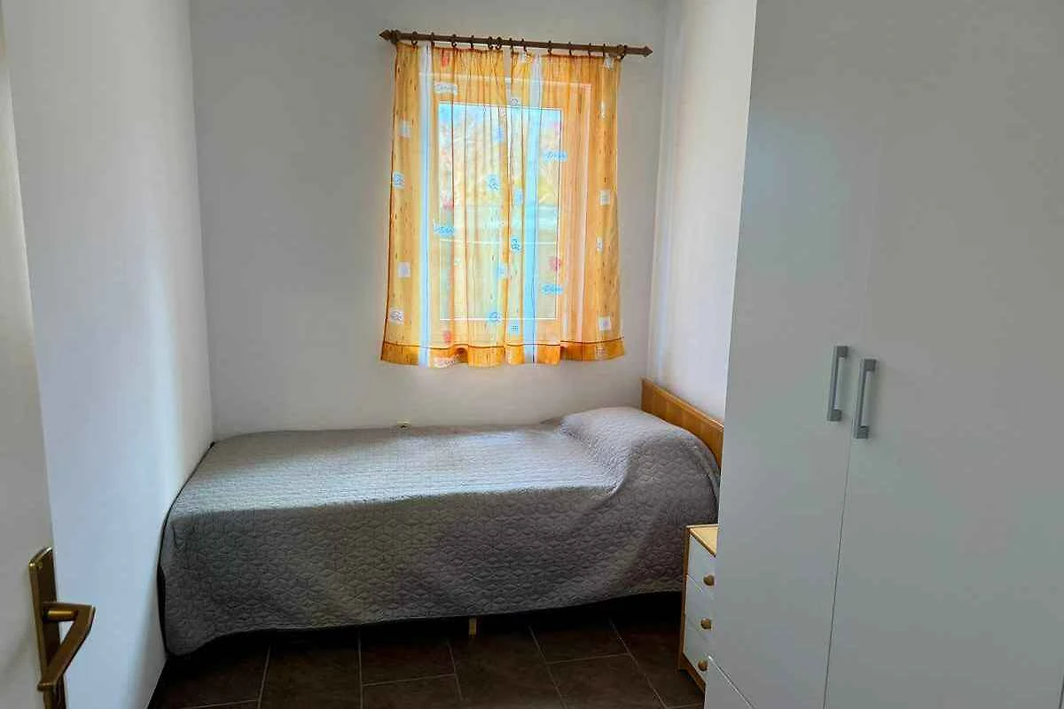 Uw vakantiehuis: Uw vakantiehuis heeft 1 verdieping, 3 kamers (daarvan 2 slaapkamers), is 60 m² groot en is geschikt voor maximaal 4 personen. Een airconditioning zorgt op hete dagen voor een aangename temperatuur. De ingang is gelijkvloers. De indeling van de kamers is als volgt: woonkamer met 1 extra bed op slaapbank en TV. slaapkamer met 1 éénpersoonsbed. slaapkamer met 1 tweepersoonsbed. keuken met eethoek, afwasmachine, elektrisch fornuis, bakoven, koelkast (80 l, vriesvak), magnetron, koffiemachine en broodrooster. badkamer met douche, WC, haardroger en wasmachine.