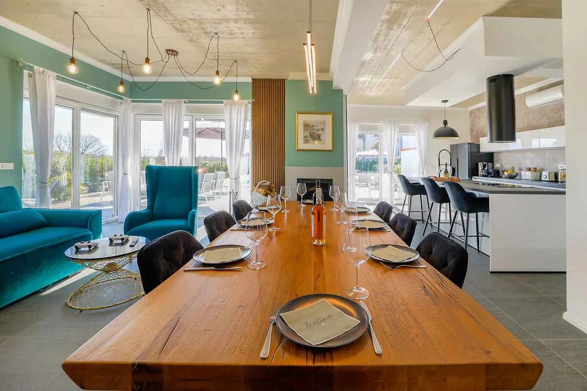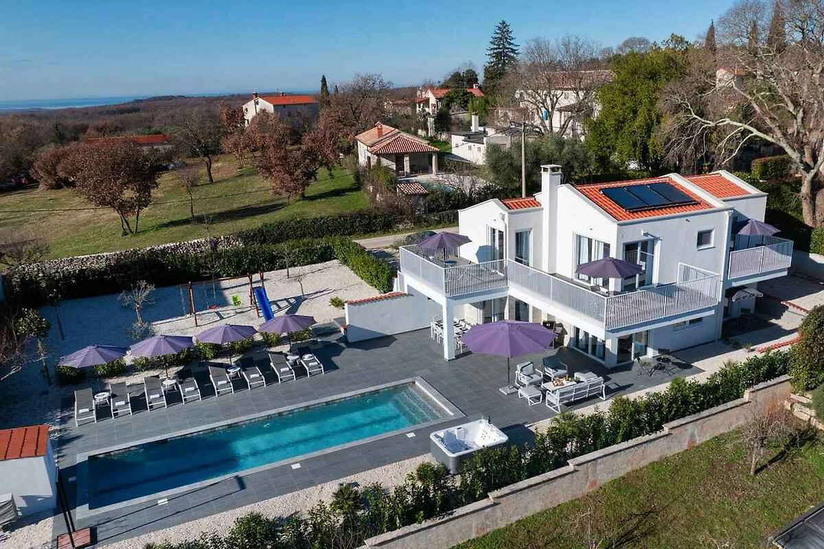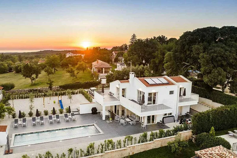 Ligging: Sinozici. Het vrijstaand vakantiehuis is modern en luxurieus ingericht. Het grondstuk is in een woongebied in het centrum. Deze plaats is populair vanwege het ligt op een rustige en zonnige plek. De toegangsweg naar het terrein gaat via een geasfalteerde zijstraat. Bij het vakantiehuis zijn parkeerplaatsen op het perceel beschikbaar. De dichtsbijzijnde winkels zijn op 3 km afstand, restaurant 2 km en centrum 2 km. vliegveld in Pula's 49 km.
