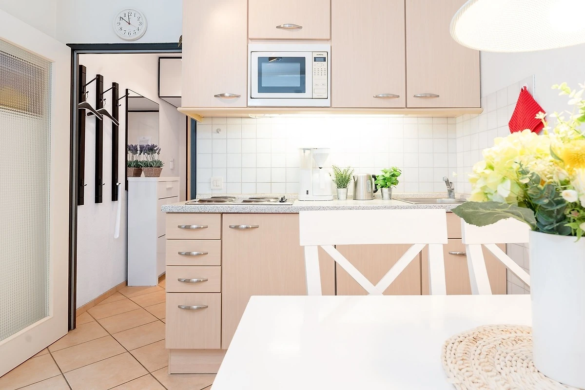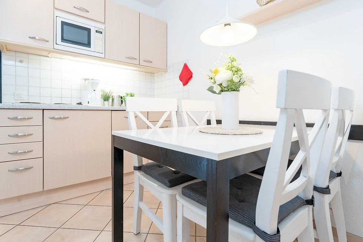 Gut aufgeteilte wohnung . Schön das man in der Küche essen konnte . Toller Blick aufs mehr . Pool super