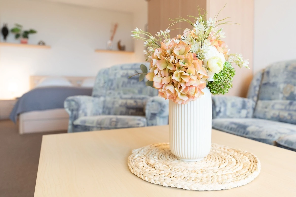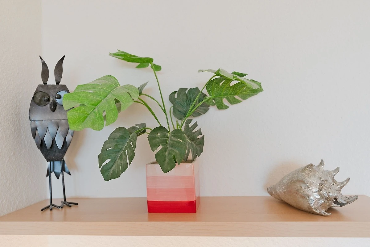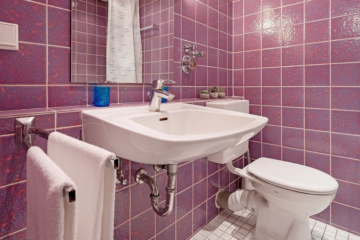 Die Lage ist gut, es gibt das Schwimmbad unten. Es gibt einen Balkon. In der Wohnung ist alles vorhanden, was man eben so braucht. Es gibt eine Spülmaschine, was wir sehr gut finden, genauso die Badewanne. Die Möbel sind zweckmäßig, aber gemütlich.