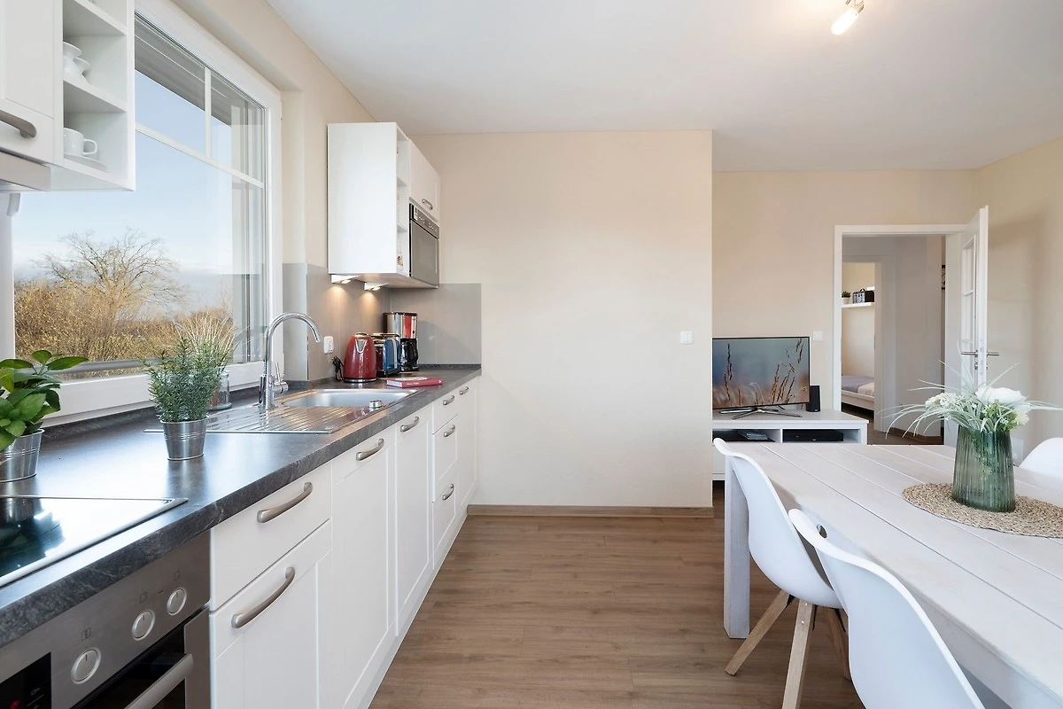 Eine super tolle Wohnung, hell, für 3 Personen perfekt; gute Lage mit top Aussicht, Strandkorb zum Beobachten des Sonnenuntergangs, Küche schick, sehr gut ausgestattet, alle Zimmer perfekt, Bad ebenso (sogar mit Radio), Parkplatz - Auto steht sicher, in allen Zimmern TV - Klasse