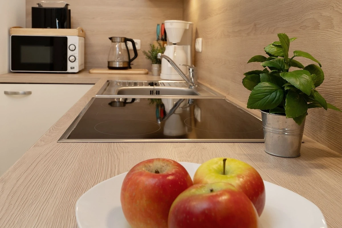 Schöne Ferienwohnung in toller Lage, optimal für zwei Personen. Wer selbst kochen möchte, vermisst evtl. Platz für Lebensmittel, der Kühlschrank ist für zwei Personen gwrase ausreichend groß. Die Ausstattung bietet alles, was man braucht. Kleine Anregung: Eine Thermoskanne.