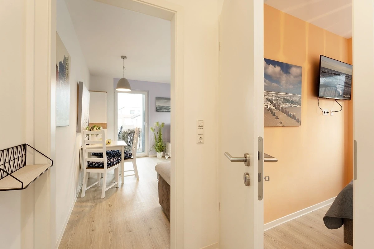 Für 2 Personen war die Wohnung vollkommen in Ordnung; mit einer weiteren Person sehen wir die Wohnsituation jedoch als schwierig an (Kleiderschrank, Staumöglichkeiten z.B. für den Koffer etc.). Die Wohnung war sehr sauber und gepflegt. Die Ausstattung der kompletten Wohnung hat uns gefallen (kleine Bitte: Die Lüftung im Badezimmer muss nicht 24h laufen!) Die zentrale, und trotzdem ruhige Lage bewerten wir positiv - Bäcker, Strand und Restaurants sind schnell zu erreichen. Natürlich ist der Preis für eine kleine Wohnung schon hoch, trotzdem würden wir die Wohnung wieder nehmen.