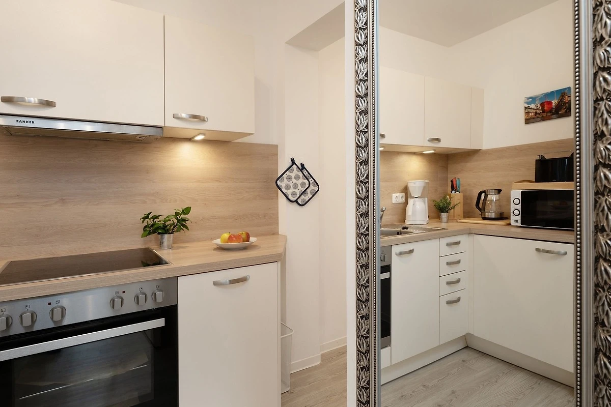 Gemütliche Wohnung für 2 Personen alles schnell zu erreichen. Eine Wanduhr wäre nicht schlecht.