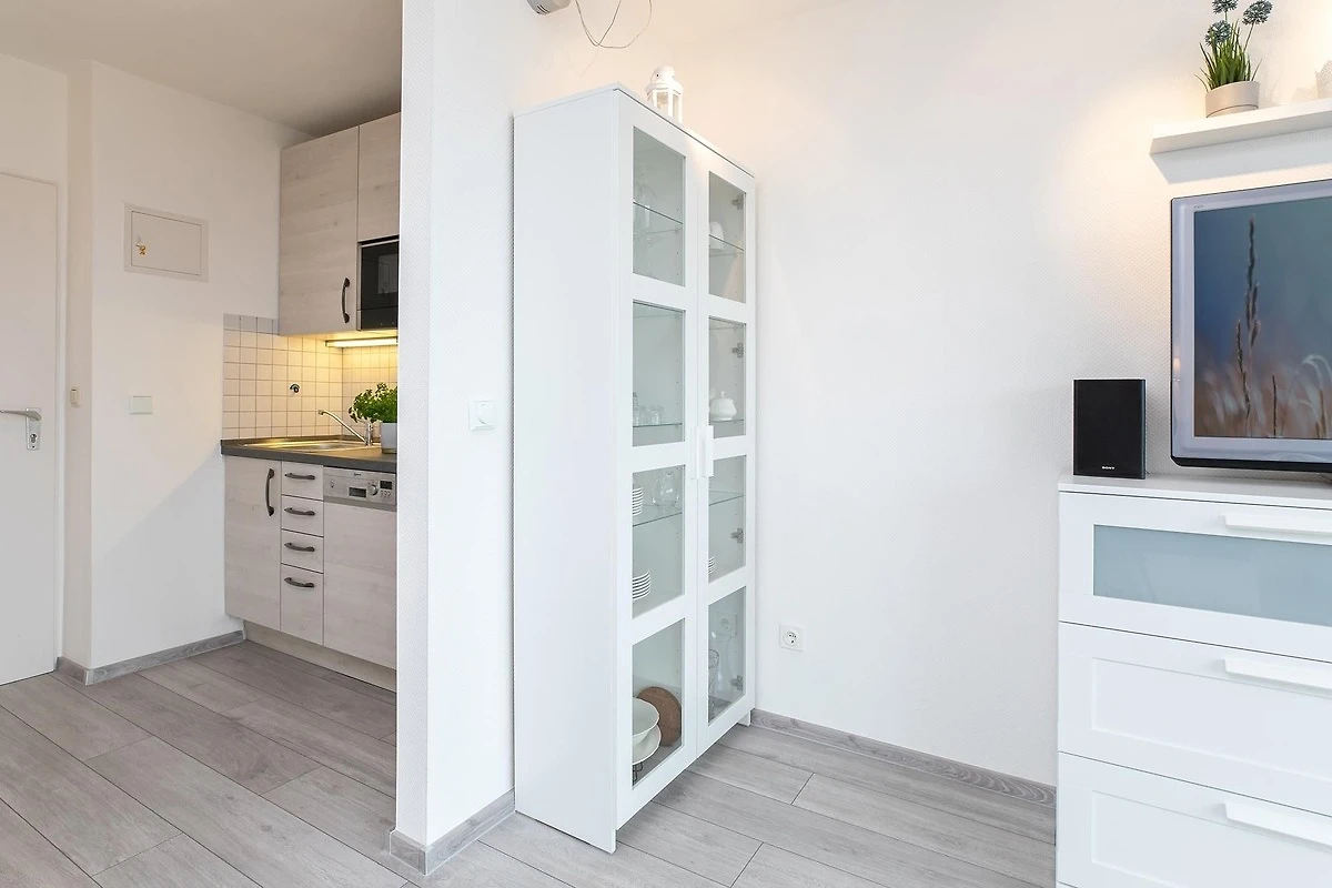 Die Wohnung ist einfach super schön.Die Lage, direkt Strandallee, kannn nicht besser sein . Nur der Stellplatz ist unmöglich. Alles sehr, sehr eng. Auch die Stellplätze. Man hatte uns zugeparkt. Kamen nicht mehr raus. Sehr ärgerlich . Parken ansonsten auch problematisch. Die Wohnung selber ist komplett neuwertig. Sehr modern und sehr hell. Alles ist da, was man benötigt. Wir würden die Wohnung immer wieder mieten, allein schon wegen der Lage.