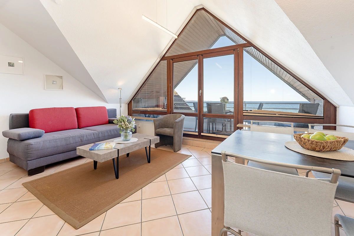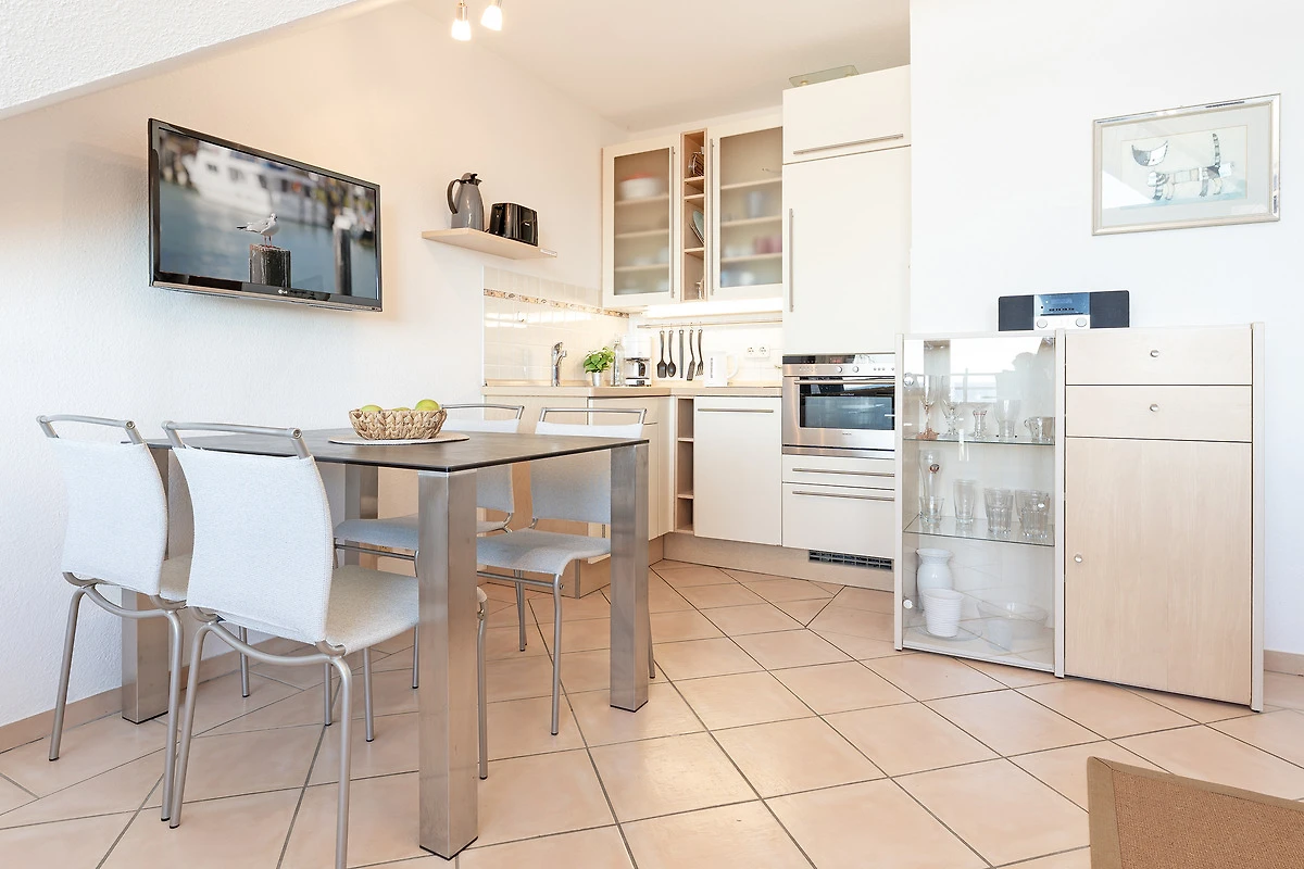Die unmittelbare Lage an der Strandallee sowie der tolle Ausblick aufs Meer sind klasse! Die Wohnung ist zweckmäßig eingerichtet.