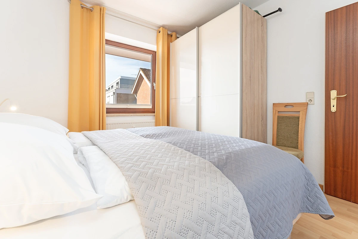 Wir haben die Wohnung mit vier Personen zwei Erwachsene und zwei Kinder bewohnt. Die Kinder haben im Wohnzimmer das Schlafsofa genutzt. Morgens schien oft früh schon die Sonne ins Wohnzimmer, weil es nur helle Plisses gibt. Das Schlafsofa war aber gut. Für vier Personen ist es schon recht klein, aber für eine Woche wirklich ok. Leider hat unser Auto von der Höhe her nicht in die Tiefgarage gepasst, so dass wir uns außerhalb einen Parkplatz suchen mussten. Insgesamt müssen 53 Treppenstufen (die Kinder haben gezählt) gestiegen werden. Der Hauseingang ist im Innenhof. Für An- und Abreise mit viel Gepäck schon eine kleine Herausforderung. Die Lage ist super. Genau über der Bäckerei Brede, wo man jeden Morgen frische Brötchen kaufen kann. Und der Blick vom Balkon auf Strand und Meer ist traumhaft.