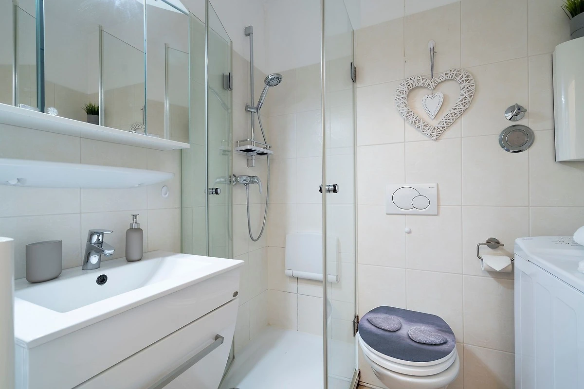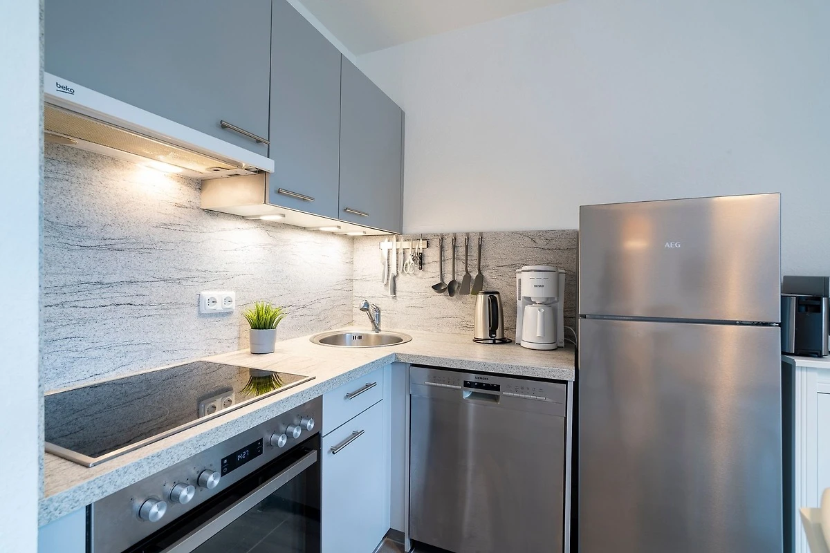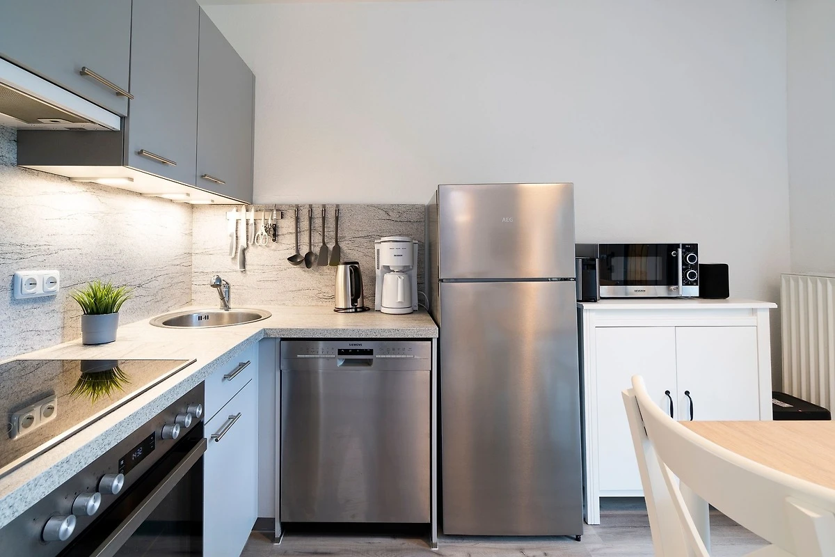 Eine wunderschöne Wohnung. Der Wohn/Küchenbereich ist vollkommen ausreichend. Das Badezimmer für etwas korpulentere Menschen nicht geeignet, da der Eingang zur Dusche recht eng ist. Die Terrasse super. Eine sehr ruhige Wohngegend. Uns hat es super gut gefallen. Würden die Wohnung wieder buchen