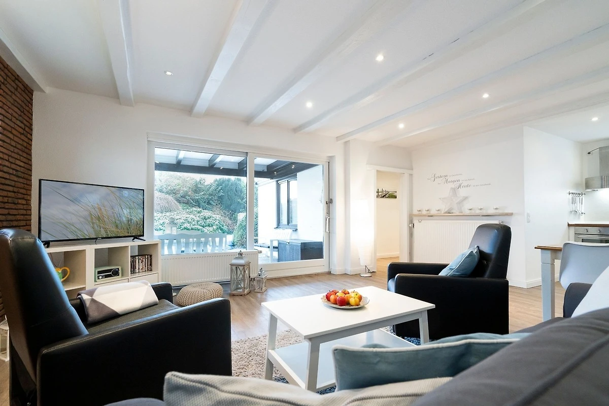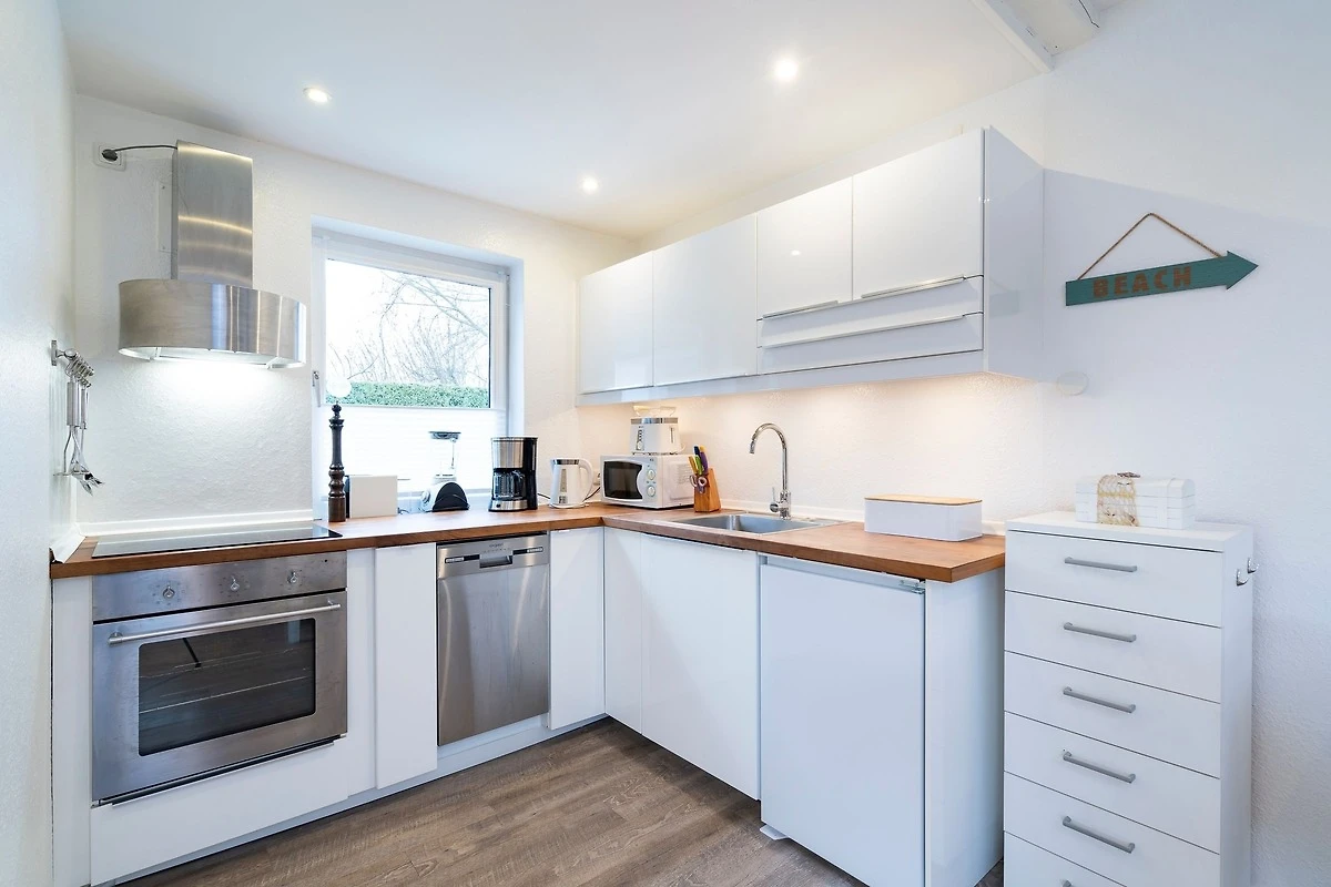 Das Häuschen liegt wunderbar ruhig in einer kleinen Siedlung in einer Sackgasse nur ca. 7 Gehminuten vom Strand entfernt. Kleiner, uneinnehmbarer Garten. Bäckerei, Café�‘s und Restaurants liegen in unmittelbarer Nähe. Zum Supermarkt REWE fährt man gerade mal 5 Minuten. Die Lage ist perfekt.