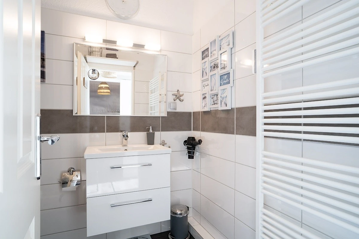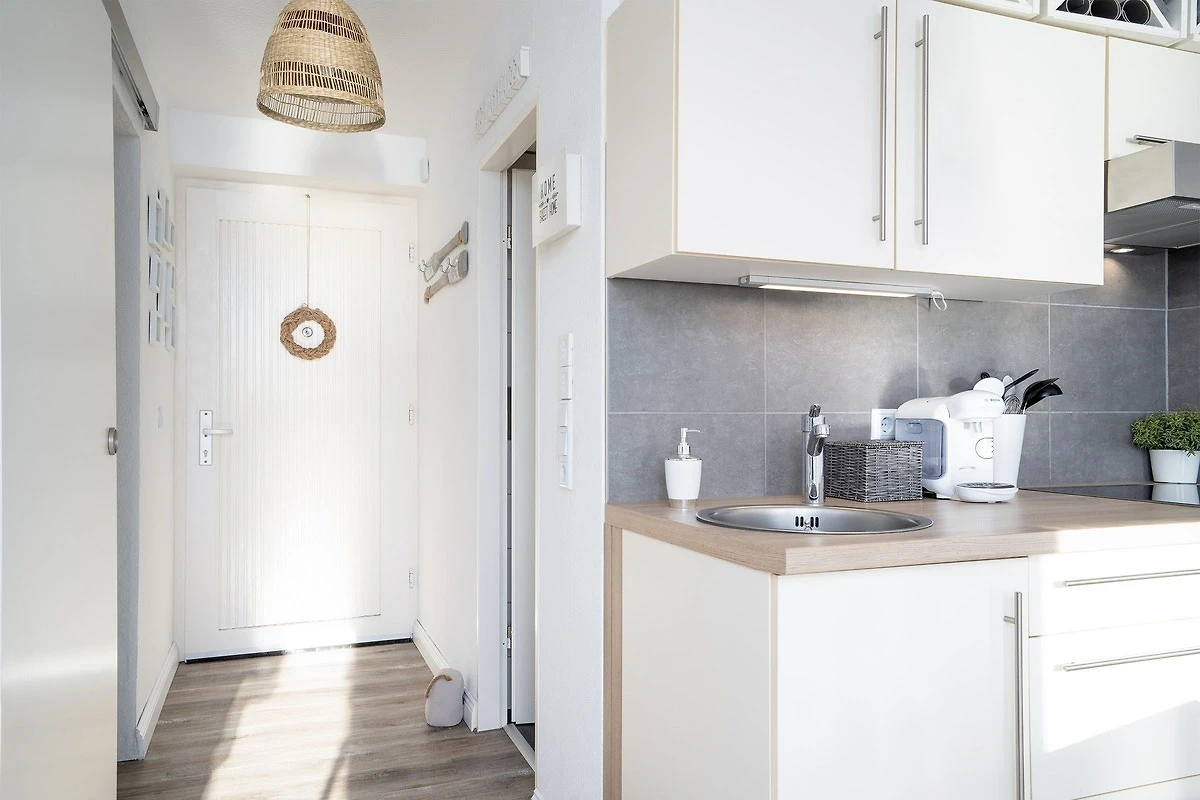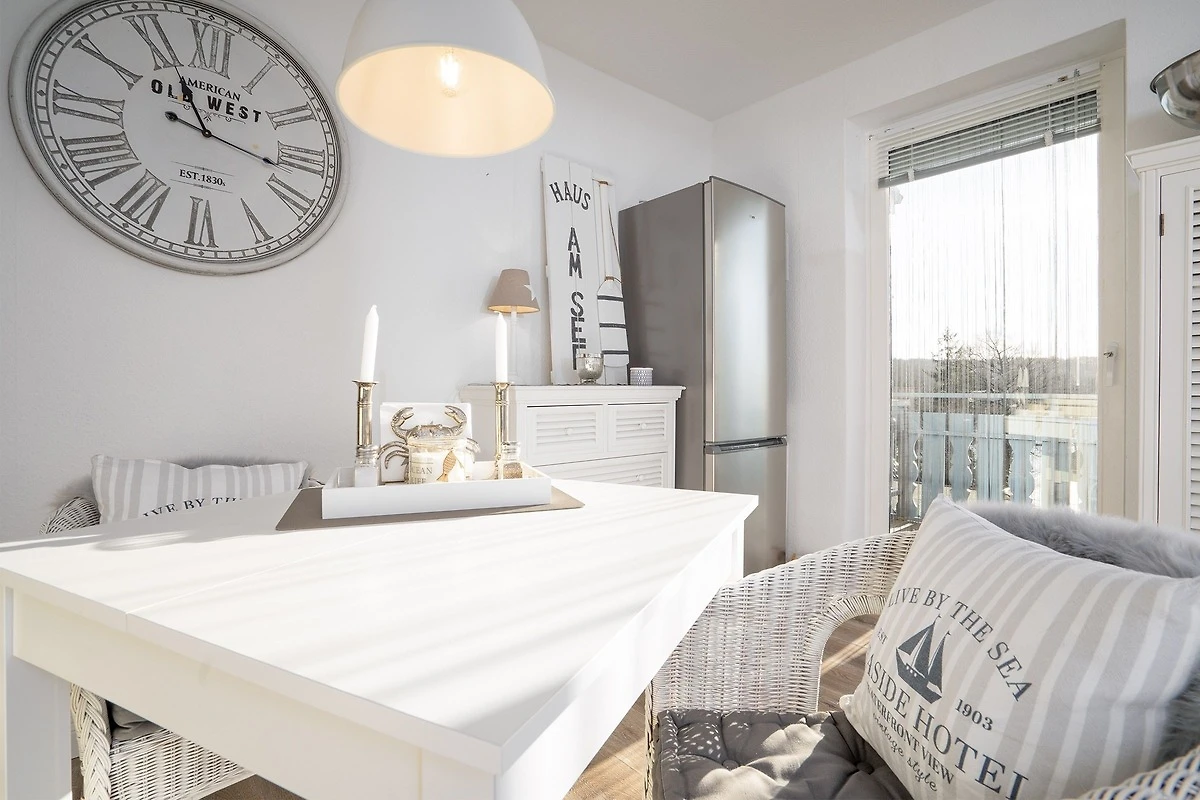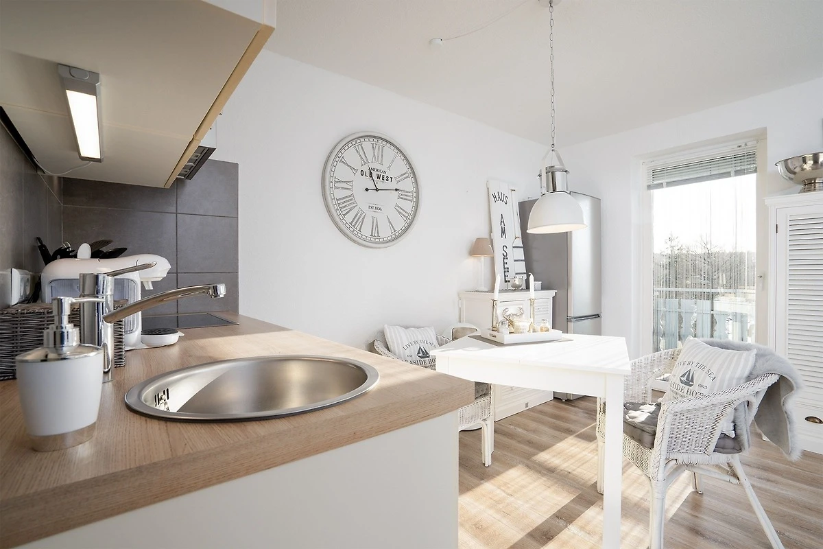 Die Bewertung Service bezieht sich auf den Vermietungsprozess, weiteren Service gab es nicht. Wir waren für eine Woche in der Ferienwohnung. Der Ausblick ist fantastisch! Wir haben uns wohl gefühlt. Die Küche ist gut ausgestattet, allerdings habe ich einen Ablaufkorb für das gespülte Geschirr vermisst, da musste dann ein Handtuch herhalten. Super ist die große Kühl- und Gefrierkombination, Sie ist aber auch nötig, denn es gibt fußläufig keine Einkaufsmöglichkeit und auch keine Restauration. Da ist Vorratshaltung angesagt. Danke für den Flyer vom Pizzaservice! Wir haben ihn nicht benötigt, aber gut zu wissen, dass er kommt. Echter Nachteil waren die fehlenden Ablage und Aufhängungsmöglichkeiten für Kleidung, Handtücher und Badutensilien. Zwei Haken im Bad sind etwas sparsam und eine Ablage über oder neben dem Waschbecken fehlt komplett. Im Kleiderschrank im Schlafzimmer kann man seine Kleidung nur gefaltet unterbringen, die Kleiderstange ist allenfalls für kurze Kleidungsstücke geeignet und es waren zudem nur drei Kleiderbügel vorhanden. Es gibt im Schlafzimmer keine Möglichkeit etwas aufzuhängen. Auch Nachtschränke oder Ablagemöglichkeiten für Wecker Nachtischlampe u.a. Sind nicht vorhanden. Die Garderobe im Flur ist mit vier Haken ausgestattet, die sind schnell am Limit, wenn man mehrere Jacken und Regenjacken in Gebrauch hat. Die Korbsessel am Esstisch sind zwar bequem, aber für das Esstischstühle wenig geeignet und zu niedrig, man fühlt sich in die Kindheit versetzt… Die Einrichtung ist hell und freundlich, für unseren Geschmack allerdings mit Deko-Artikeln zu überladen. Sie passen zwar ins maritime Ambiente, aber hier wäre weniger mehr. Insgesamt aber eine schöne kleine Wohnung! Vielleicht kommen wir einmal wieder.