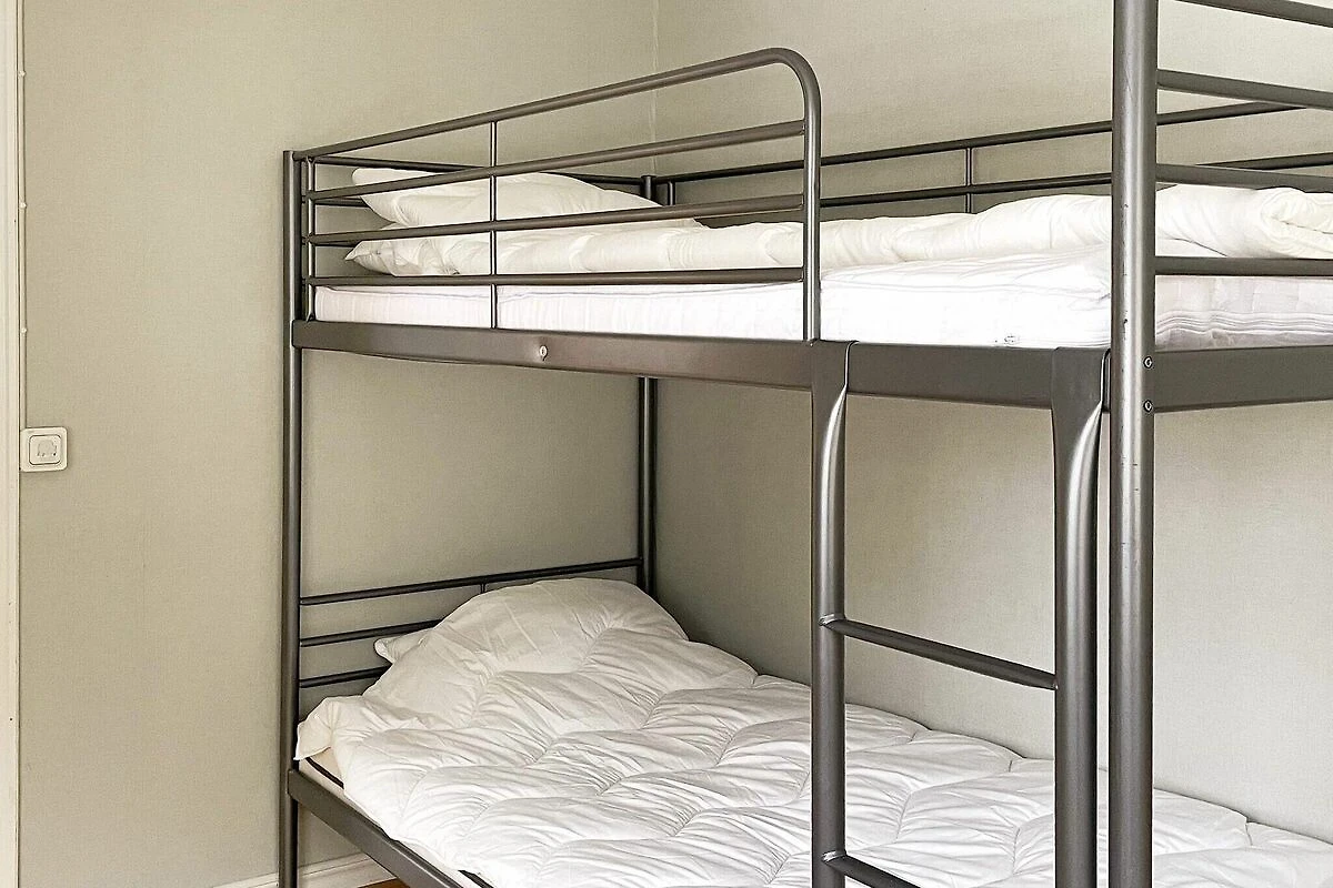 Entschleunigen Sie und genießen Sie die Ruhe! Dieses idyllisch gelegene rote Holzhaus vermittelt einem ein Gefühl von Ruhe und Harmonie. Eine Unterkunft für die große Familie oder eine größere Gruppe. Das Ferienhaus ist geräumig und eignet sich für Ruhesuchende, die sich dennoch in der Nähe schöner Badeufer und in einer wunderschönen Umgebung erholen möchten. Heller Eingangsbereich, rechts davon befindet sich ein großes Wohnzimmer mit vielen Sitzplätzen. Angrenzend finden Sie ein Schlafzimmer mit einem ausziehbaren Bett. Die Küche ist modern, weiß und im Landhausstil gehalten. Der Charme des Alten wurde erhalten, kombiniert mit einer neuen Küche. Geradeaus befindet sich ein großes Badezimmer mit Toilette und Dusche. Über eine Treppe gelangen Sie hinauf in ein großes Familienzimmer mit Holzbalken und Kamin. Hier oben befindet sich ein großes Schlafzimmer mit Doppelbett. Außerdem gibt es ein weiteres Badezimmer mit Dusche und WC. Neben dem Familienzimmer befindet sich das dritte Schlafzimmer des Hauses mit einem Etagenbett und zwei Einzelbetten. So können Sie mit der ganzen Familie und Angehörigen zusammenleben. Das Grundstück teilen Sie sich mit weiteren Unterkünften vor Ort, die auch gemeinsam gebucht werden können. Dies ist von Vorteil, wenn Sie eine größere Gruppe sind. Als Bewohner des Ferienhauses haben Sie Zugang zum Garten direkt vor der Tür. Der Garten ist groß und wird mit den anderen Unterkünften geteilt, die Sie ebenfalls buchen können. Siehe auch Haus 56391.