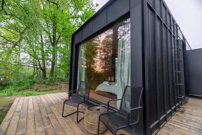 De Nokken Forest Cabin is een luxe oase te midden van de natuur. Deze prachtige cabin is 30m2 groot en ontworpen als een exclusieve hotelsuite, maar dan vrij gelegen te midden van weelderige landschappen. Het is het ultieme toevluchtsoord voor natuurliefhebbers. Met een groot raam op het westen, biedt het een panoramisch uitzicht op het glooiende landschap. Als gast kan je genieten van prachtige zonsondergangen direct vanuit bed. Hier vind je privacy en rust, omringd door de natuurlijke schoonheid van de Wilsumer Berge. De adembenemende vergezichten nodigen uit tot ontspanning en reflectie.Na een heerlijke boswandeling kan je genieten van een warme douche in de prachtig ontworpen badkamer. De omliggende bossen en heidevelden bieden talloze mogelijkheden voor fiets- en wandeltochten. Op slechts 25 minuten rijden ligt het historische stadje Ootmarsum, bekend om zijn charmante galerieën en uitstekende restaurants, waardoor gasten een culturele en culinaire verkenning kunnen beleven naast hun natuurlijke retraite.
