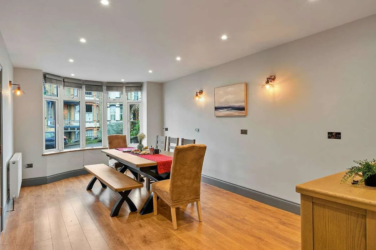 Dit ruime en uitnodigende huisje is geschikt voor maximaal acht gasten, waaronder zes volwassenen en twee kinderen. Het beschikt over vier comfortabele slaapkamers, waaronder twee kingsize bedden, een tweepersoonsbed en een stapelbed voor de kinderen. Het huisje is huisdiervriendelijk. Huisdieren zijn tegen betaling toegestaan, zodat uw harige metgezellen mee kunnen op vakantie. De open woonkamer is voorzien van een gezellige bank en een smart-tv, ideaal om te ontspannen na een dag vol ontdekkingen. Het eetgedeelte biedt voldoende ruimte voor gezinsmaaltijden en er is WiFi beschikbaar in het hele pand. Voor uw gemak is er privéparkeergelegenheid beschikbaar.