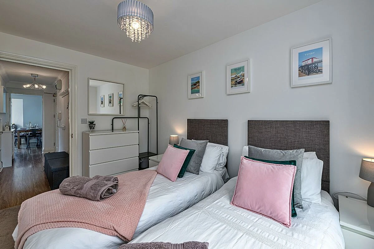 Het appartement ligt in de charmante badplaats Tenby en biedt gemakkelijke toegang tot een verscheidenheid aan bezienswaardigheden. Het beroemde South Beach, op slechts een halve kilometer afstand, biedt een perfecte plek om te zwemmen of een rustige wandeling te maken. Gasten kunnen de smalle geplaveide straatjes van Tenby verkennen, vol met leuke winkeltjes, cafés en pubs. Voor degenen die geïnteresseerd zijn in buitenactiviteiten: het Pembrokeshire Coastal Path begint vlakbij en biedt een adembenemend uitzicht op Caldey Island. Daarnaast is het havengebied een knooppunt voor boottochten, waaronder visexpedities en bezoeken aan nabijgelegen eilanden. Het openbaar vervoer is gunstig dichtbij en de bus- en treinstations zijn gemakkelijk bereikbaar.