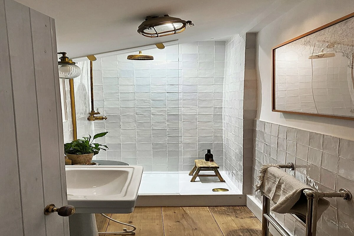 Het huisje is verdeeld over drie verdiepingen en beschikt over een rustige woonkamer en een landelijke keuken/eetkamer op de begane grond. Blootgestelde zandstenen muren en lage plafonds roepen nostalgische charme op, terwijl de charmante binnenplaats met een kenmerkende kersenbloesemboom op het zuidwesten ligt en de ruimte baadt in de middag- en vroege avondzon, perfect om buiten te ontspannen. Boven heeft de hoofdslaapkamer op de bovenste verdieping zichtbare balken en een vrijstaand bad, waardoor een gezellig en luxueus toevluchtsoord ontstaat (let op de beperkte hoofdhoogte). De tweepersoonsslaapkamer op de eerste verdieping heeft een aangrenzende doucheruimte, en een prachtig dubbel stapelbed aan de achterzijde dient als een perfecte schuilplaats voor kinderen.