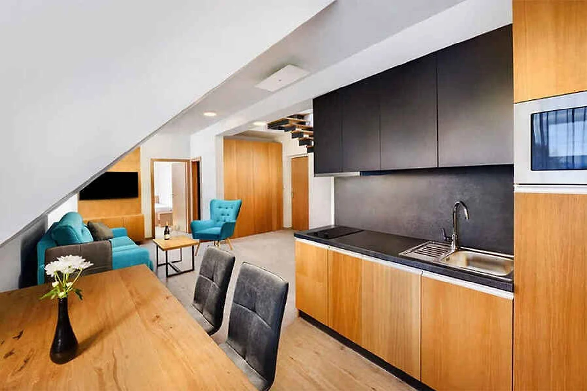 Ligging: Liptovský Mikuláš. De modern ingerichte vakantiewoning ligt in een apartementenhuis en in een vakantiepark. Parkeerplaats op een parkeerplaats in de plaats. Winkel 5 km. Restaurant 4 km. Gemeentecentrum 4 km. station in Liptovski Mikulas 3,6 km. Vliegveld in Poprad Tatry 55 km. overdekt zwembad in Tatralandia 300 m. Dichtstbijzijnde stad: Liptovski Mikulas 4 km, Andere afstanden: Aquapark Besenova 16 km Hoge Tatra 60 km Kosice 171 km Bratislava 190 km Skigebied Malino Brdo 31 km Skigebied Čertovica, Vyšná Boca 42 km Skigebied Bačova Roveň 37 km