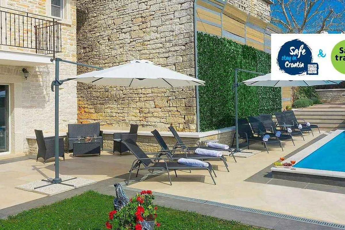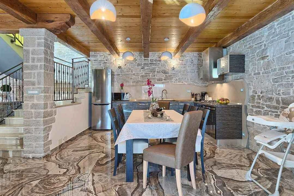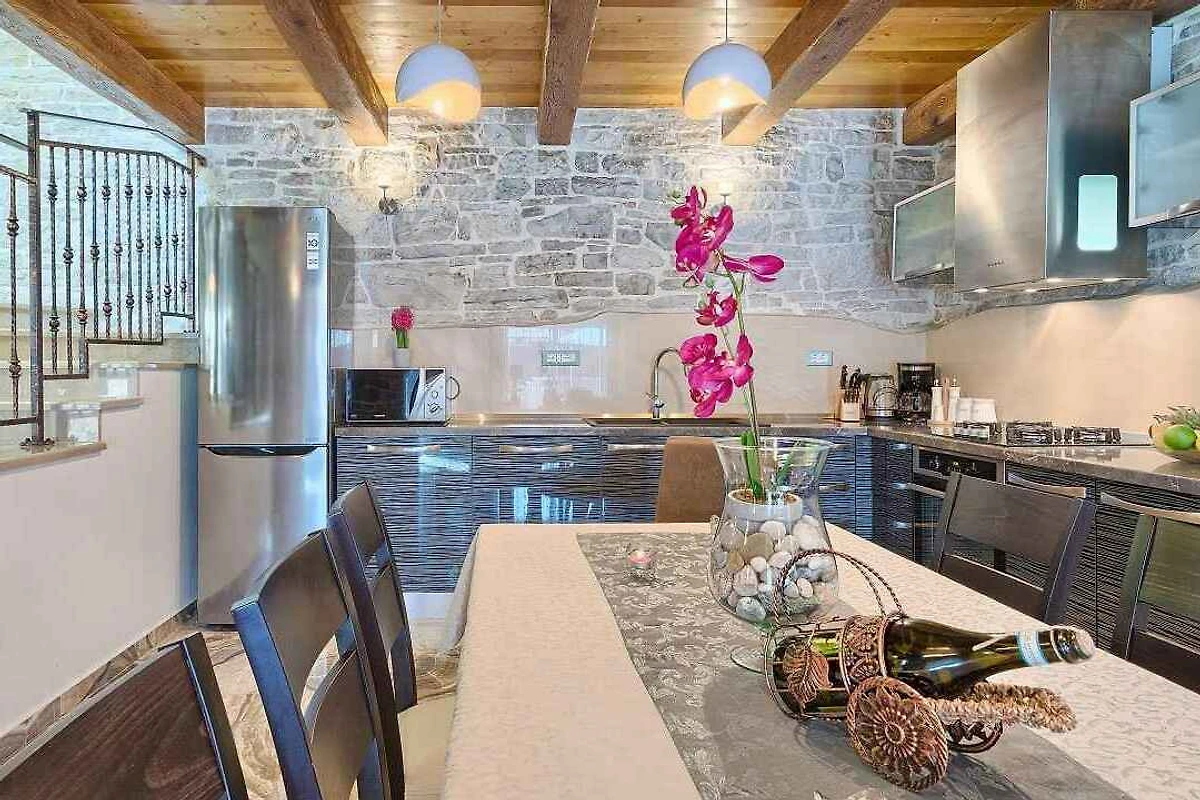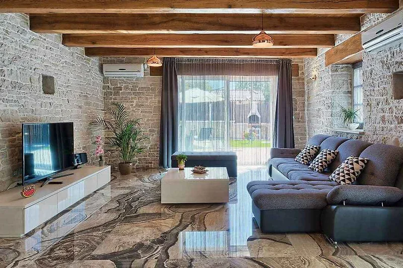 Ligging: Pazin. De in 1880 gebouwde villa is modern en rustiek ingericht. Het grondstuk is aan de rand van de plaats. Deze plaats is populair vanwege het uitzicht auf den Garten en het ligt op een rustige plek. Bij de villa zijn U 4 parkeerplaatsen voor meerdere auto's op het perceel beschikbaar. De dichtsbijzijnde winkels zijn op 2 km afstand, restaurant 1400 m en centrum 2 km. apotheek in Pazin 2 km.