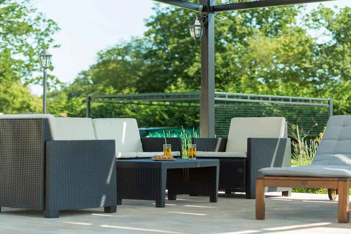 De villa ligt op een gesloten terrein met tuin. Het terrein is met een hek omsloten. U kunt buiten relaxen op het terras met ligstoel en tuinmeubeklen. De speelplaats met schommel laat kinderharten sneller slaan. Een barbecue is aanwezig. Trampoline Het privé te gebruiken zwembad heeft een buitenzwembad. 26 m2