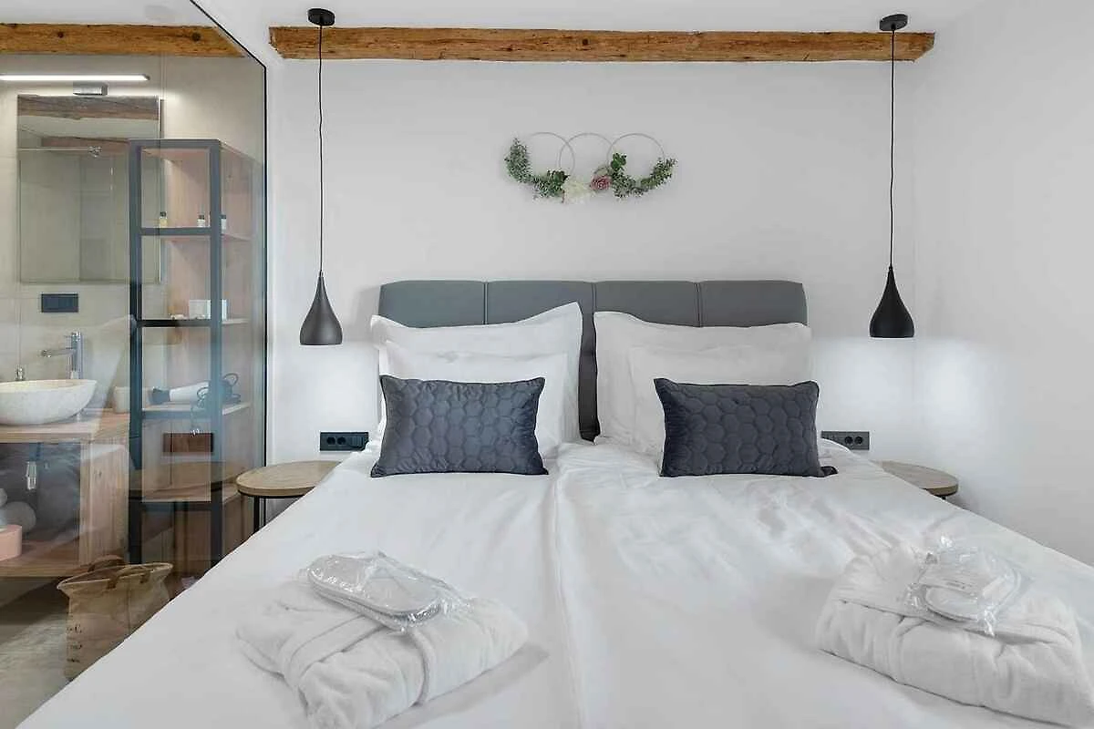 Uw vakantiehuis: Uw villa heeft 2 verdiepingen, 5 kamers (daarvan 4 slaapkamers), is 220 m² groot en is geschikt voor maximaal 10 personen. Een airconditioning zorgt op hete dagen voor een aangename temperatuur. Op koude dagen kan uw villa verwarmd worden met vloerverwarming. De indeling van de kamers is als volgt: woon/slaapkamer met 2 extra bedden en TV. 4 slaapkamer elk met 1 tweepersoonsbed. Kooknis in de woonkamer met eethoek, afwasmachine, bakoven, koelkast (vriesvak), magnetron, koffiemachine en broodrooster. badkamer met douche, 1 wastafel, WC, haardroger en wasmachine. 2 badkamer elk met douche en 1 wastafel. badkamer met douche, 1 wastafel en WC.