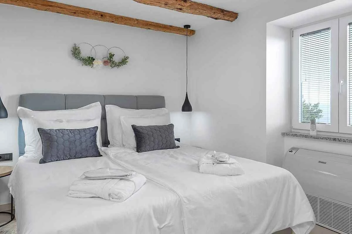 Ligging: Hreljin. De villa is modern ingericht. Het grondstuk is in een woongebied. Deze plaats is populair vanwege het uitzicht op de zee. Bij de villa zijn U 2 parkeerplaatsen voor meerdere auto's op het perceel beschikbaar. De dichtsbijzijnde winkels zijn op 2,8 km afstand en restaurant 1,8 km.