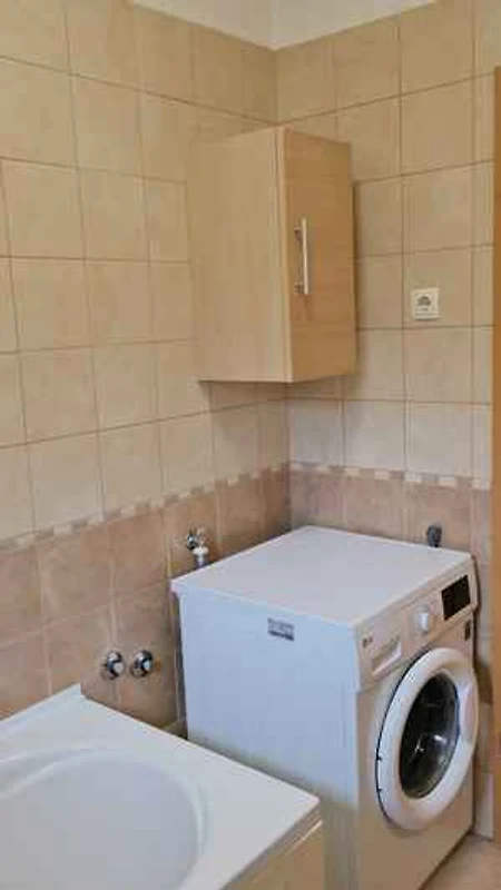 en leidt via een buitentrap direct in de gang. De indeling van de kamers is als volgt: woonkamer 15 m² groot en met zithoek en TV. U heeft toegang tot het balkon. slaapkamer 7 m² groot en met 1 éénpersoonsbed. slaapkamer 9 m² groot en met 1 éénpersoonsbed. slaapkamer 10 m² groot en met 1 tweepersoonsbed. keuken 7 m² groot en met eethoek, TV, afwasmachine, elektrisch fornuis (keramische kookplaat, 1 kookplaat), bakoven, afzuigkap, koelkast (vriesvak) en magnetron. badkamer 5 m² groot en met badkuip, 1 wastafel, WC, haardroger, venster en wasmachine.