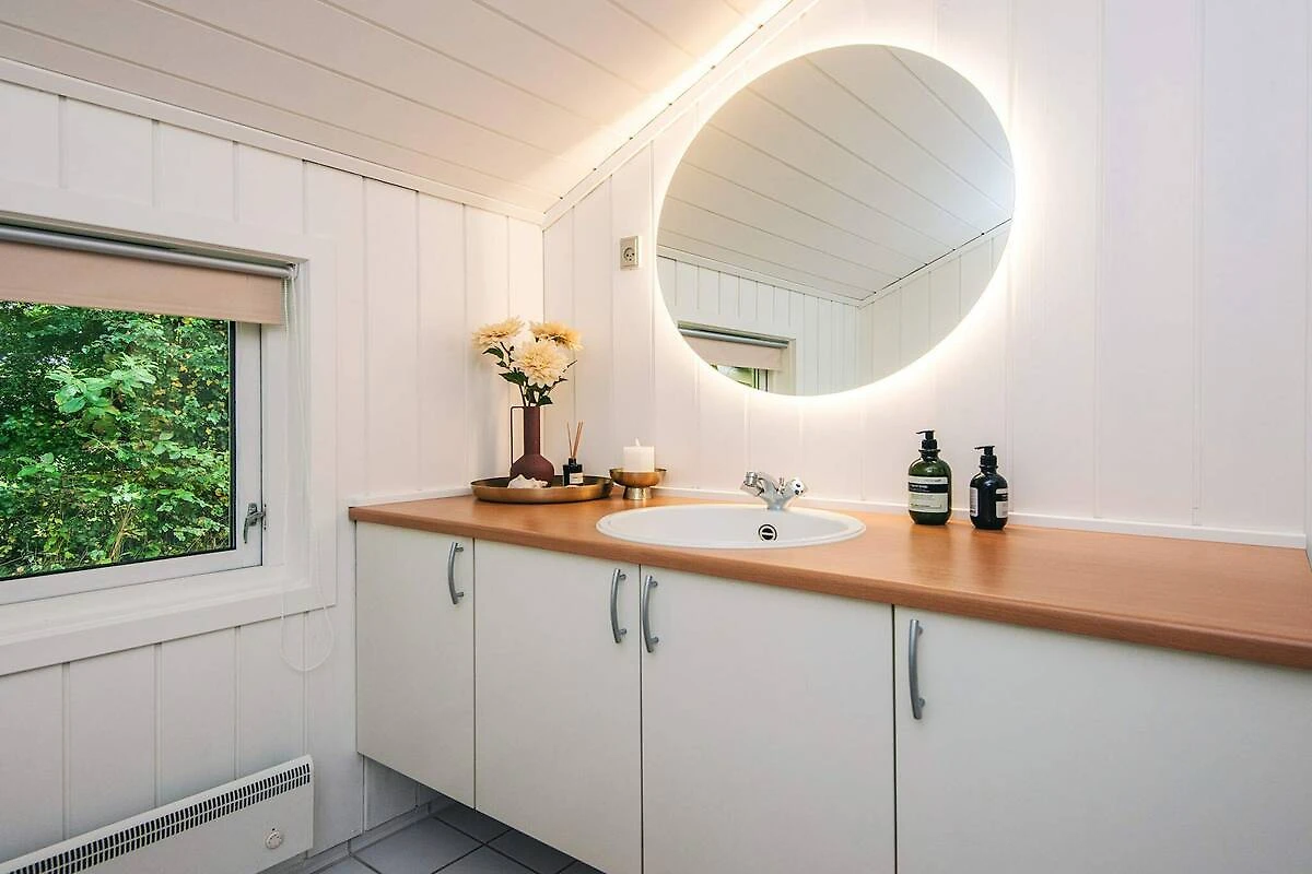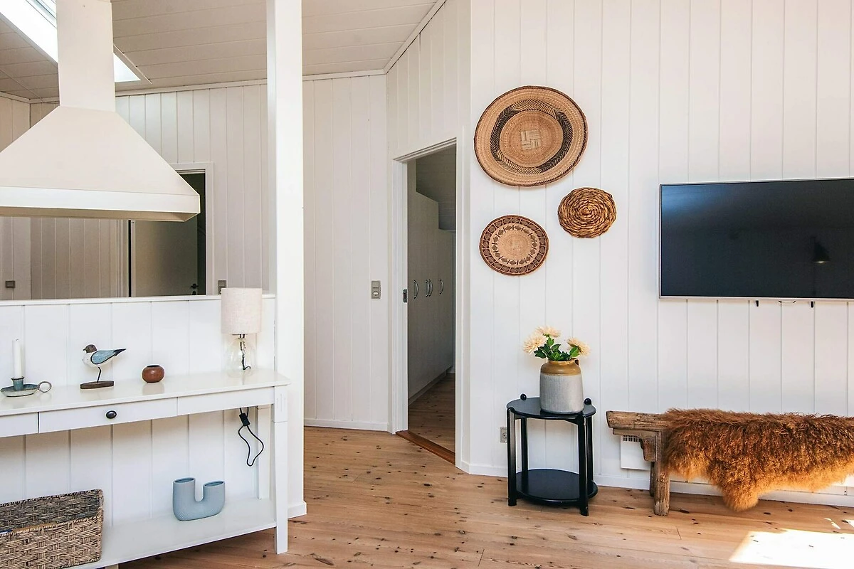 , keuken(fornuis(elektrisch), koffiezetapparaat, afwasmachine, vriezer(1-59L), koel-/vriescombinatie), woon/slaapkamer(TV(duitse zender(s), Deense TV zenders (DR1 en TV2), noorse TV zenders (NRK en TV2), zweedse TV zenders)), slaapkamer(2-pers. bed), slaapkamer(2-pers. bed), slaapkamer(1-pers. bed), badkamer(wasbak, douche, toilet, wasmachine), verwarming(elektrisch), terras, tuin, tuinmeubilair, lucht-lucht warmtepomp