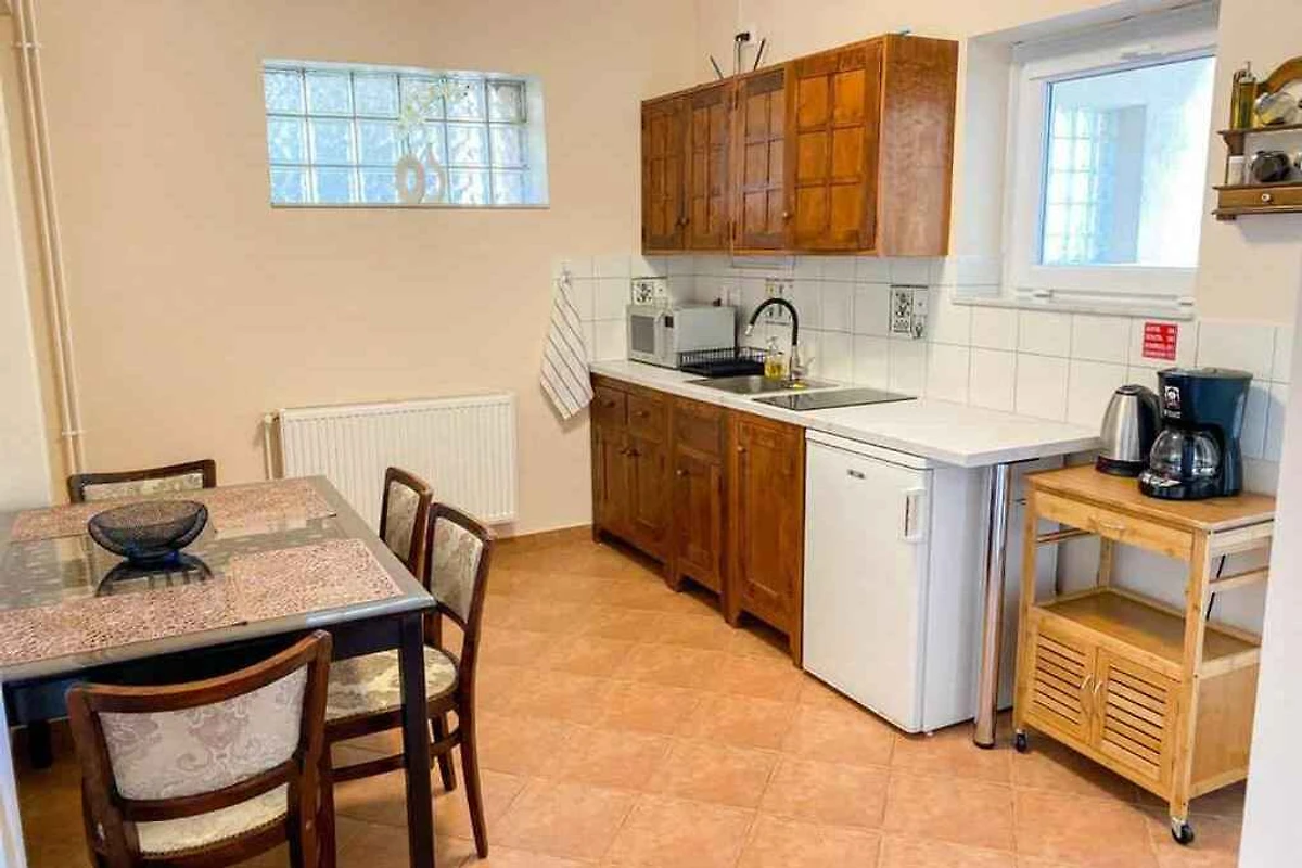 Ligging: Hévíz. De studio ligt in een appartementenhuis, is in het jaar 2024 gerenoveerd en is rustiek en functioneel ingericht. Het grondstuk is in het centrum. Deze plaats is populair vanwege het uitzicht auf den Hof en het ligt op een rustige plek. Bij het huis zijn U 4 parkeerplaatsen voor meerdere auto's op het perceel beschikbaar. De dichtsbijzijnde winkels zijn op 650 m afstand, restaurant 400 m en centrum 600 m. Heviz: thermaal bad 2,1 km en apotheek, bank elk 750 m. station in Keszthely 8,1 km. Een kinderspeelplaats op 270 m afstand. hoofdweg 500 m.